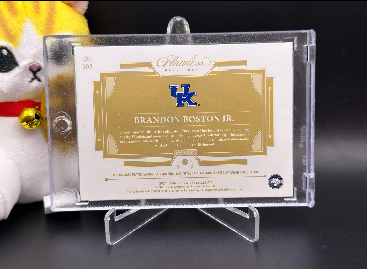 2021-22 Panini Flawless Brandon Boston Jr. RC 手提 新秀 大学 布兰登 波士顿 1/1编 湖水蓝 one of one 收藏必备 卡签 rpa 峰哥