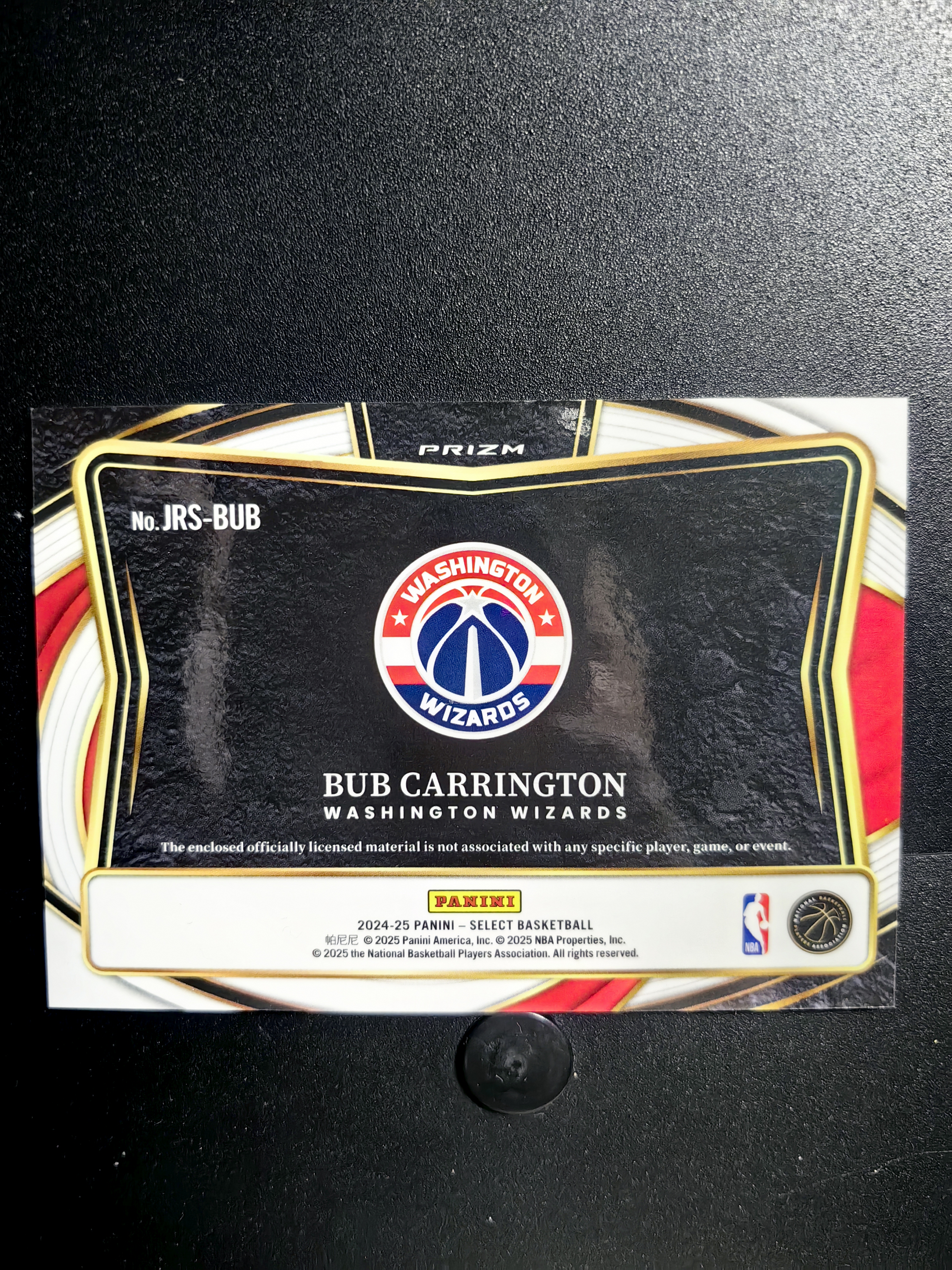2024-25 Panini Select Bub Carrington RC 奇才 巴布 卡林顿 卡灵顿 新秀 大窗 球衣 物料 银折 折射
