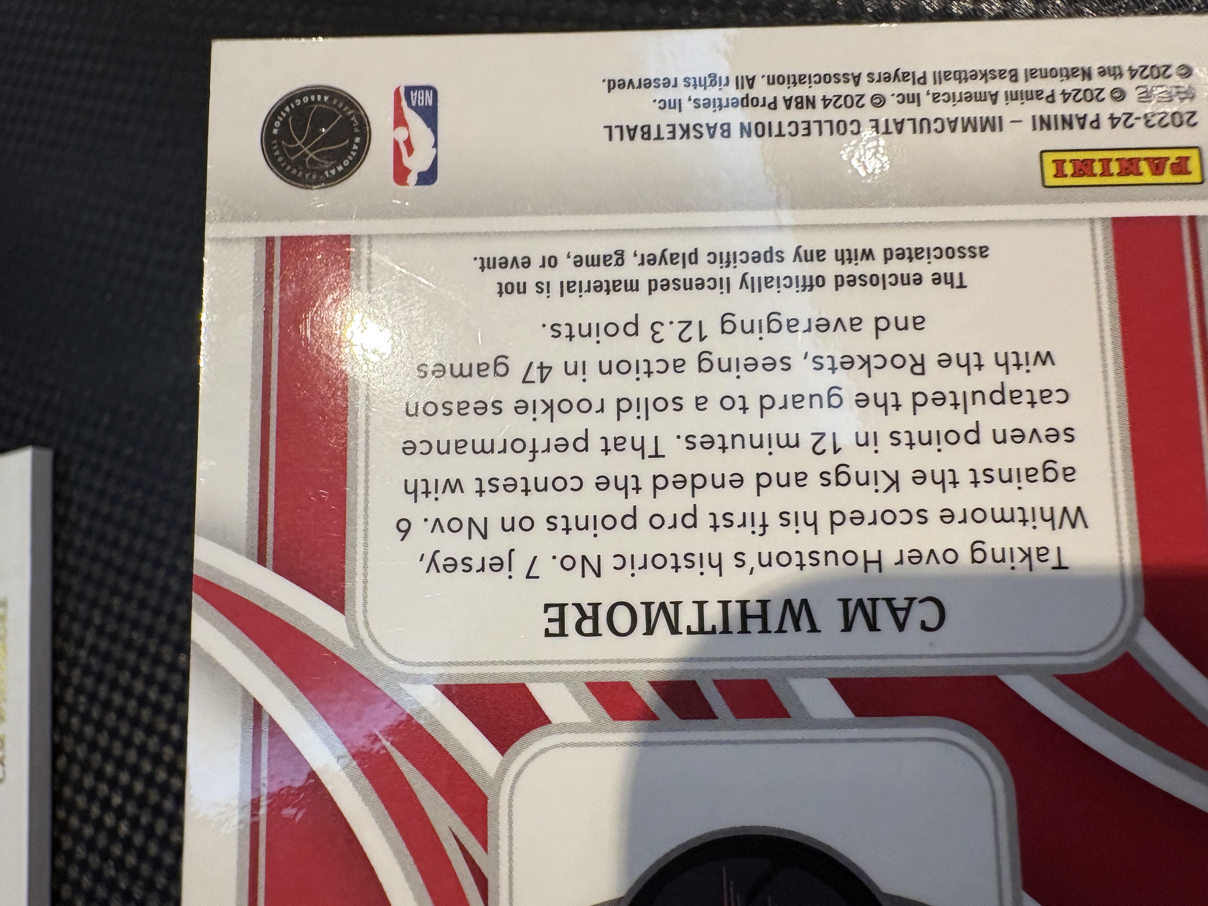 2023-24 Panini Immaculate Cam Whitmore RC 卡姆 惠特摩尔 新秀 IMM 高端 系列 球衣 暴力切割 物料 大窗 双色 patch 火箭 06/50编 惠特莫尔