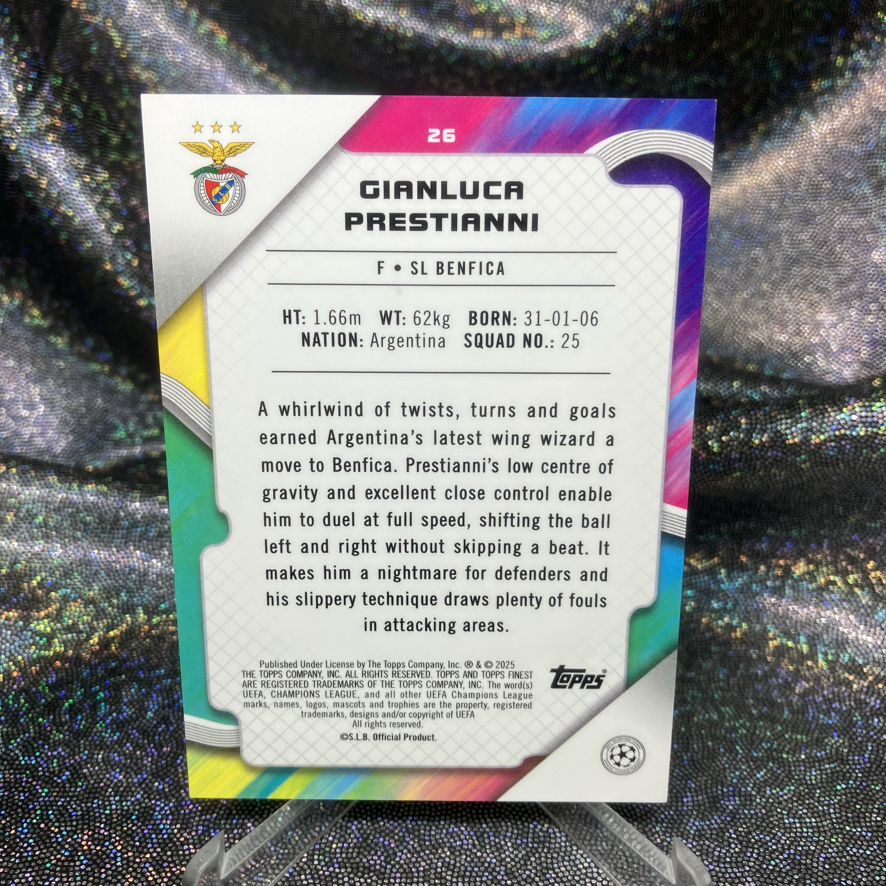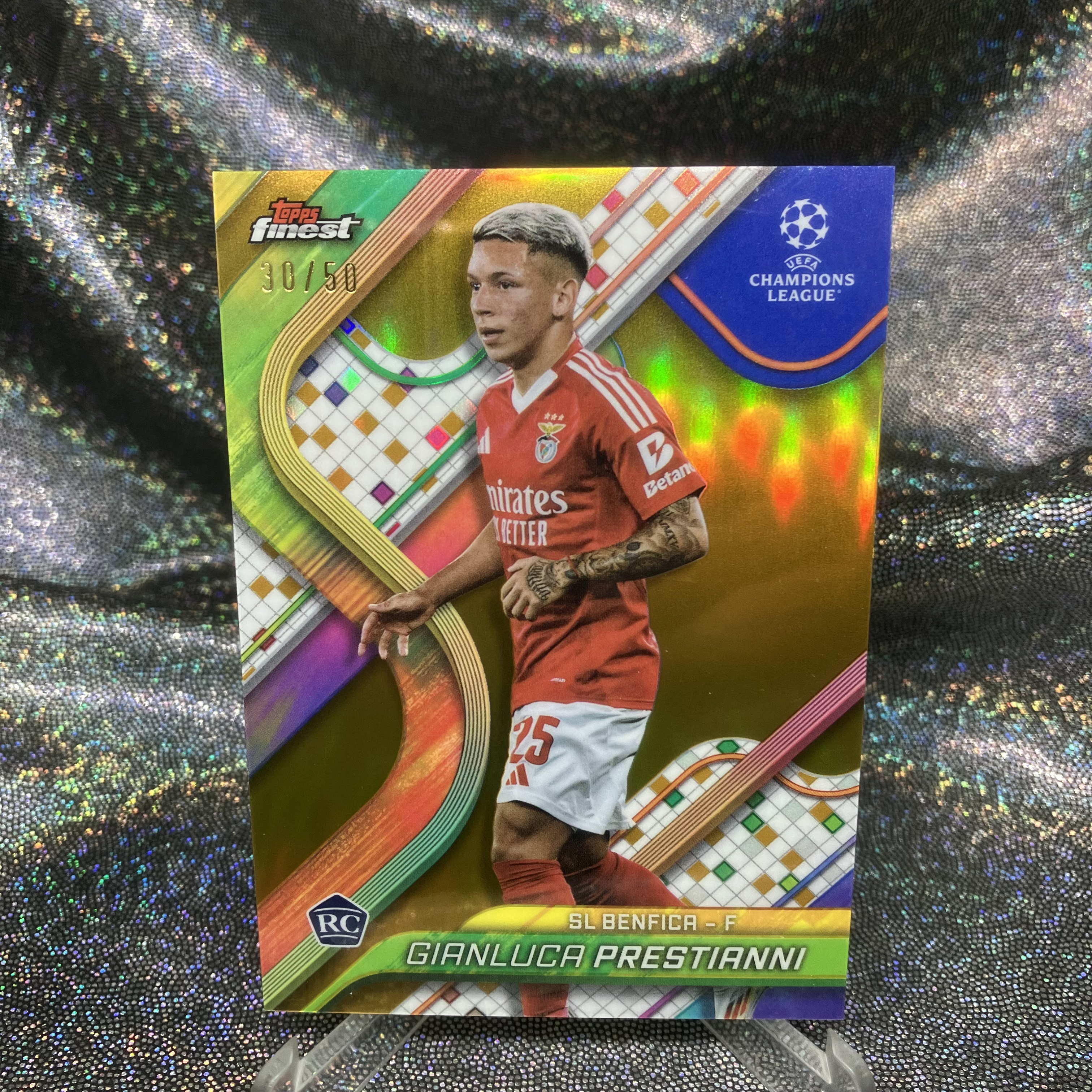 2024-25 Topps Finest Prestianni RC 普雷斯蒂安尼 新秀 50编 正金折 阿根廷 边锋 本菲卡小妖 小跳蚤 19岁妖星 未来可期