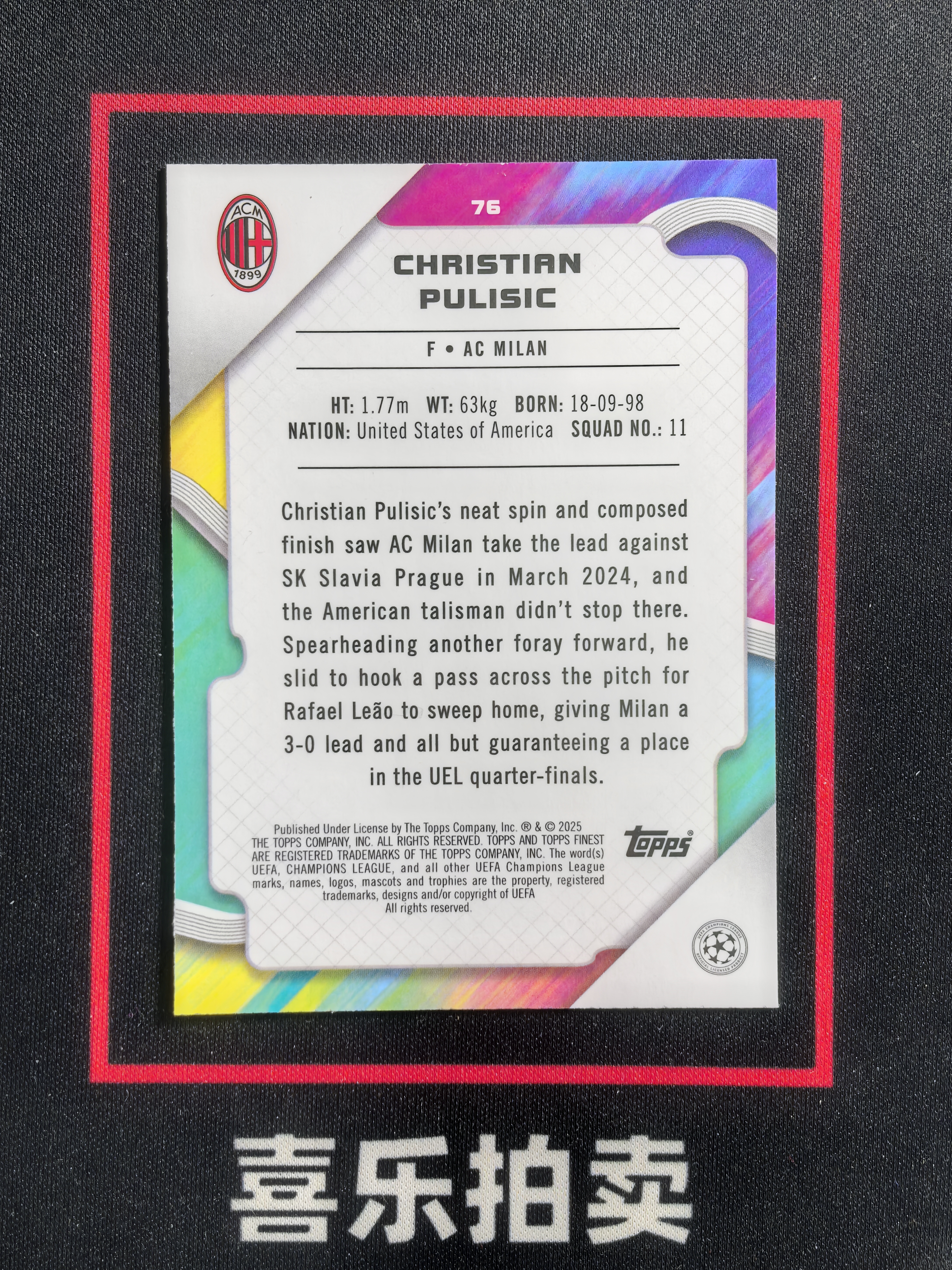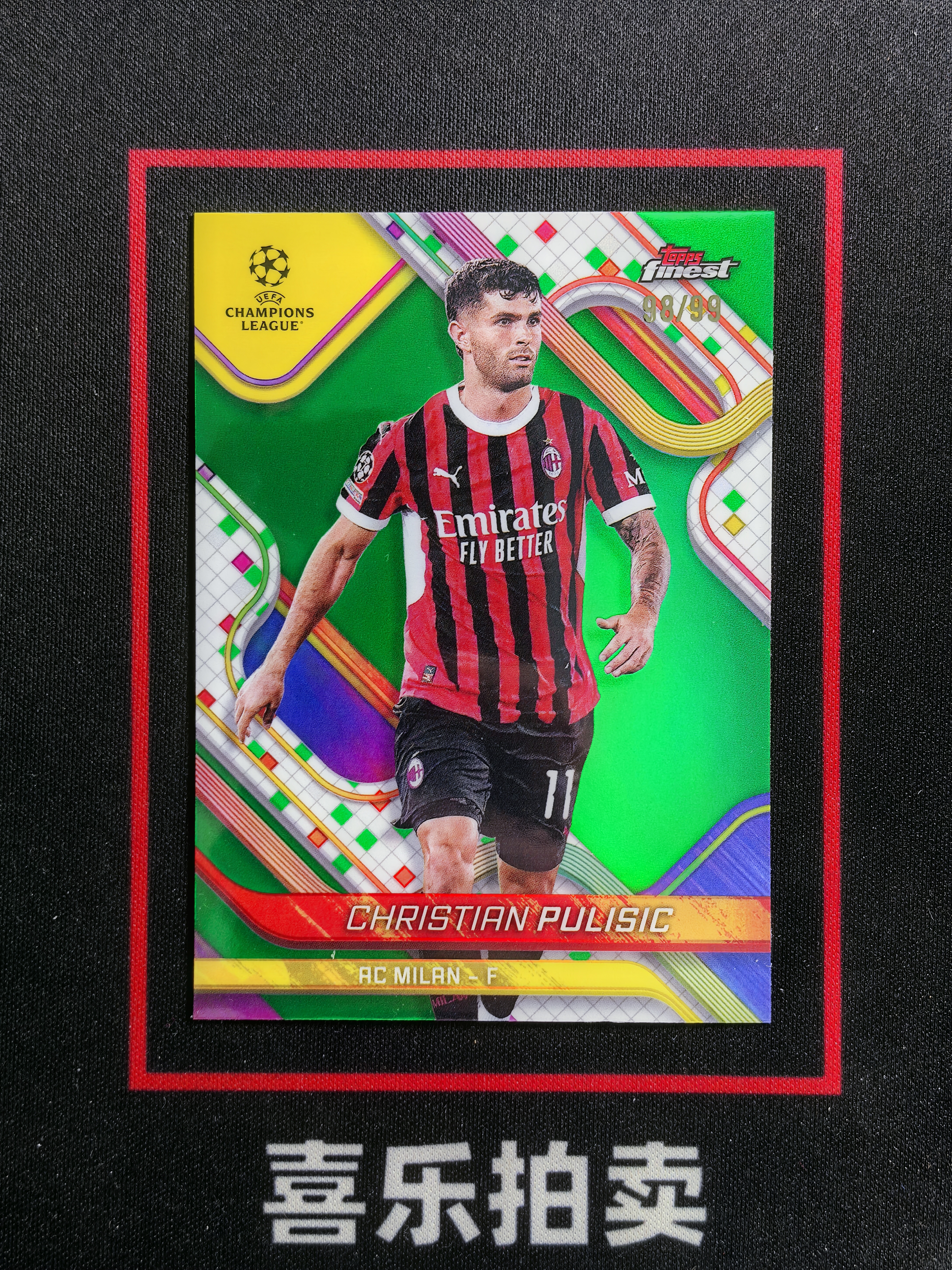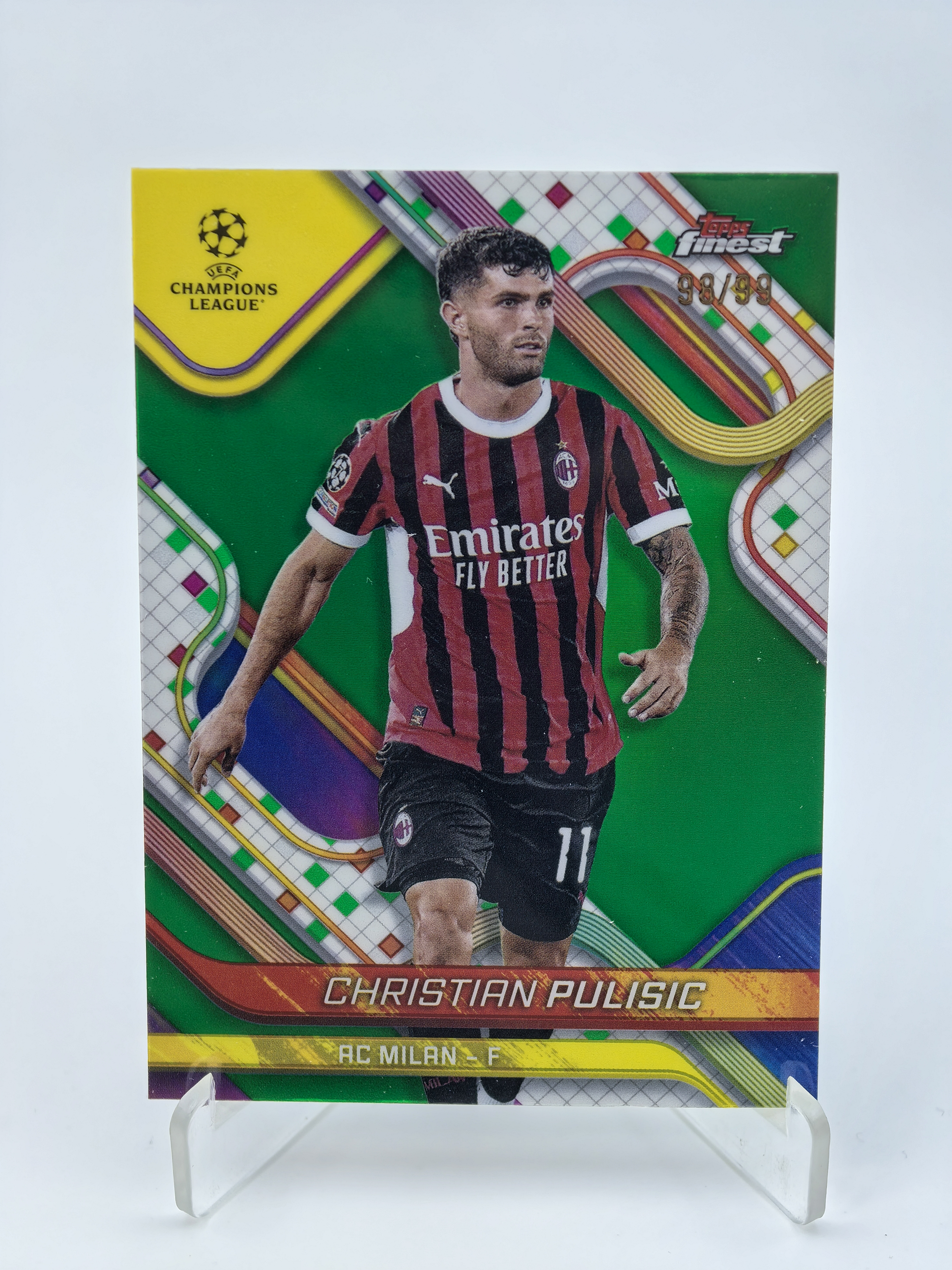 2025 Topps Finest Christian Pulisic 欧冠 欧战 AC米兰 普利西奇 98/99编 绿折 折射 收藏必备 卡品如图 ltx