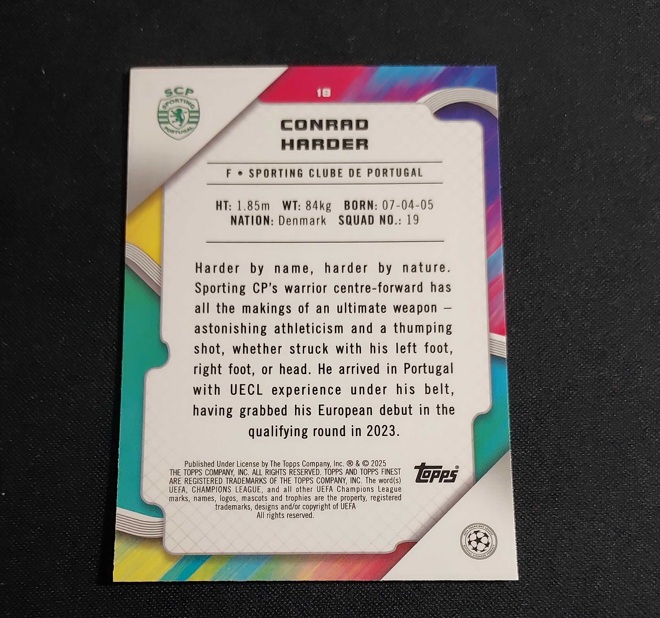 2024-25 Topps Finest Conrad Harder RC 哈德尔 葡萄牙体育 116/150编 蓝折 折射 新秀 卡品如图 专收 收藏必备