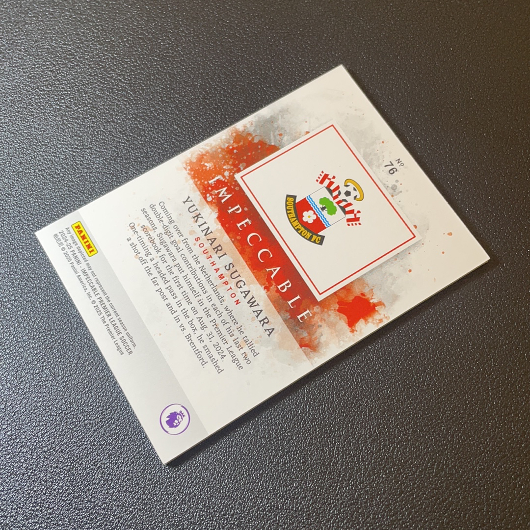 2024-25 Panini Impeccable Yukinari Sugawara RC 小真金 南安普顿 新秀 菅原由势 1/20编 首编 低编 银平行 轻印-SY8032