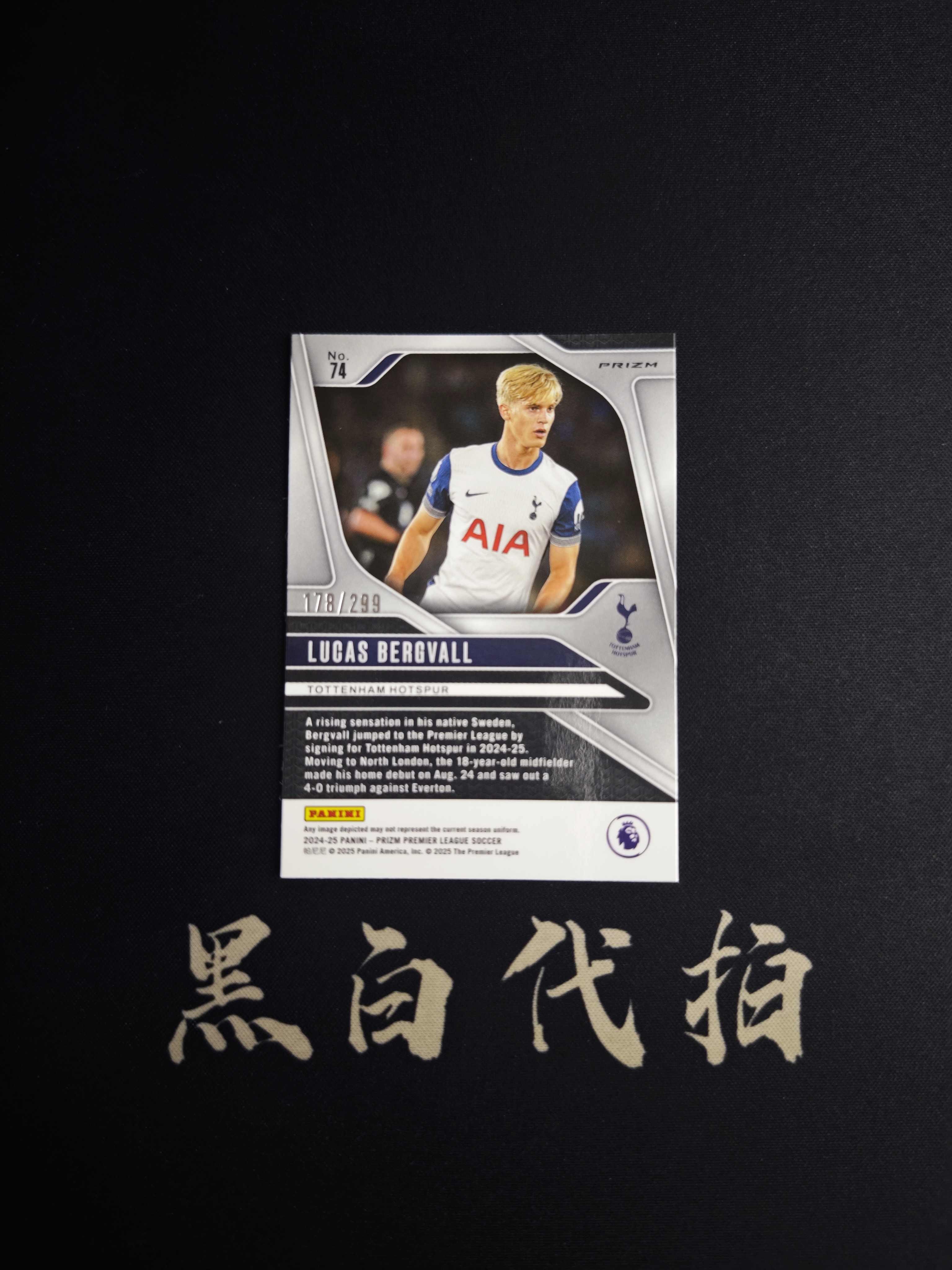 2024-25 Panini Prizm LUCAS BERGVALL RC 英超pz 卢卡斯 贝里瓦尔 贝利瓦尔 热刺 新秀 瑞典前锋 蓝折 178/299编 带编 折射 卡品如图【CC06】