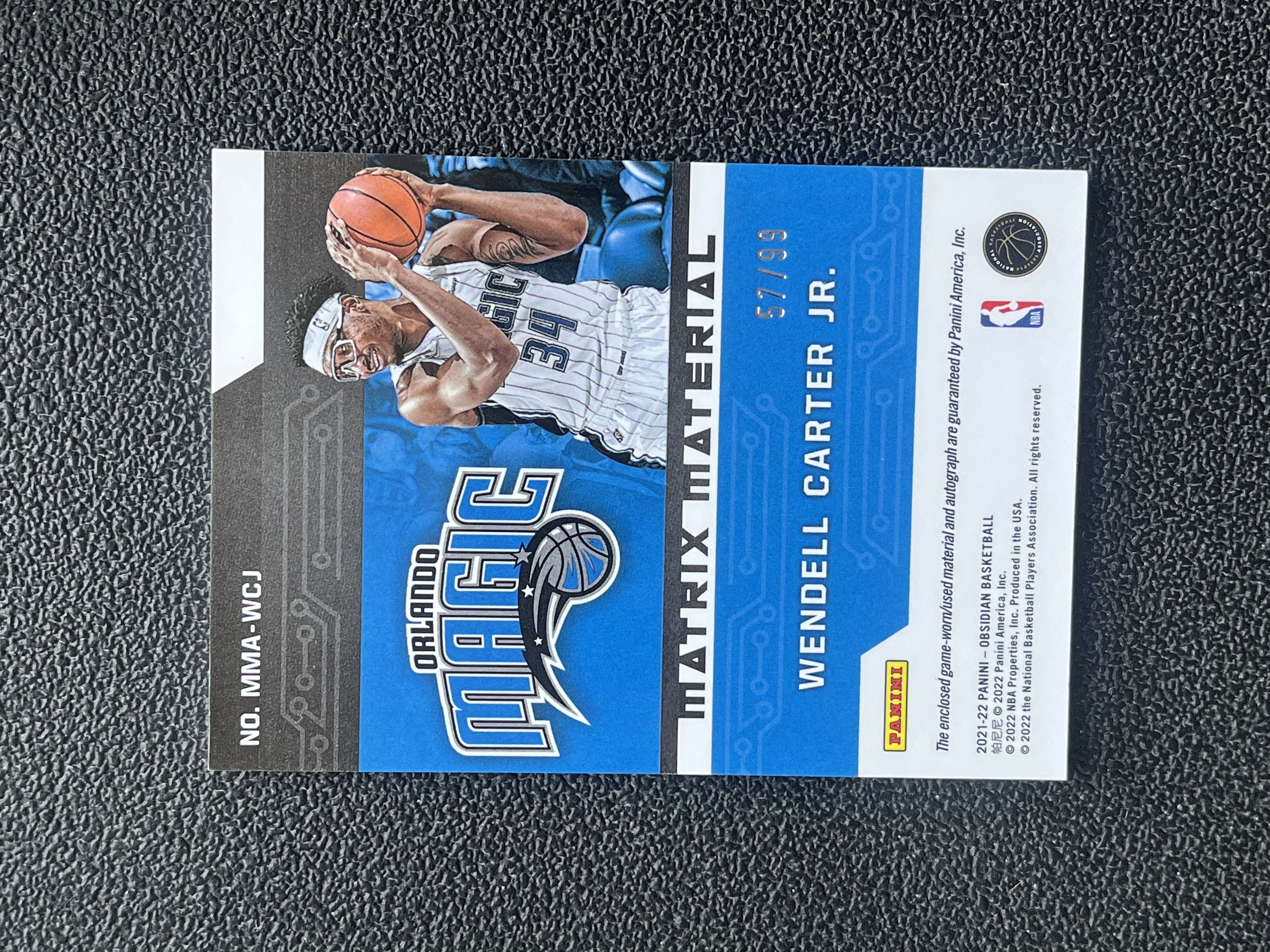2021-22 Panini Obsidian Wendell Carter Jr. 【艾比拍卖】黑曜石 魔术 小温德尔 卡特 平行 矩阵 Matrix 签字 贴签 99编 球衣实物 专收必备 向阳