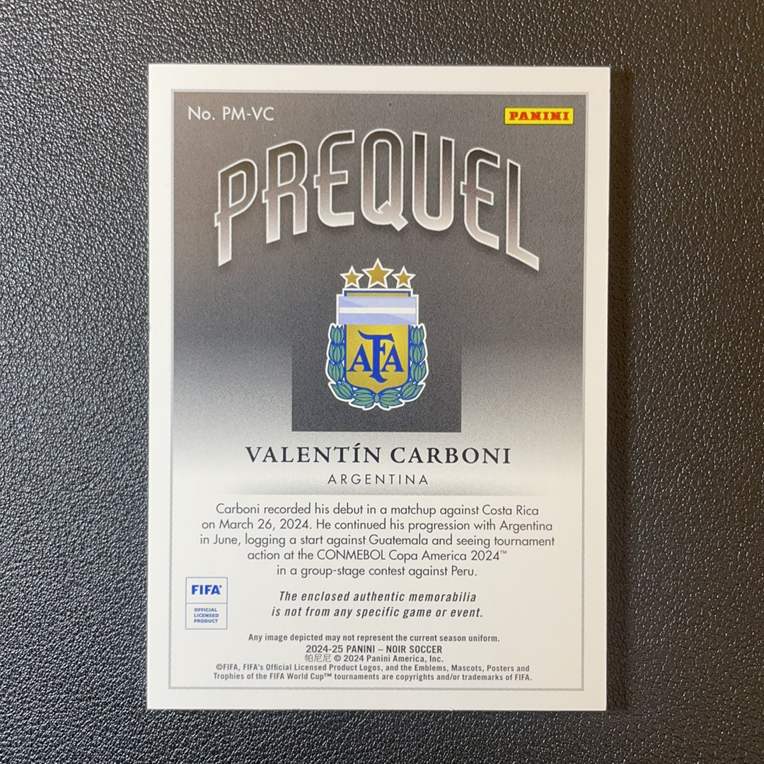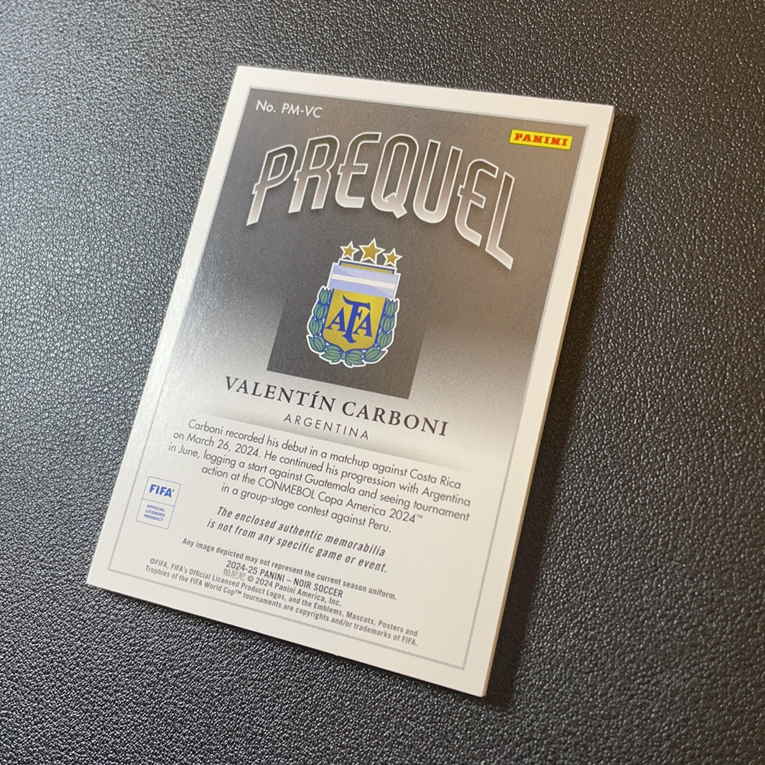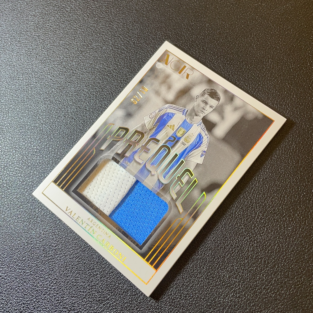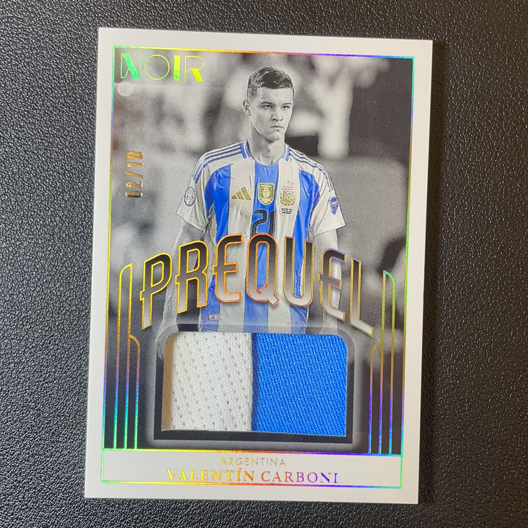 2024-25 Panini Noir Valentín Carboni 诺尔 阿根廷 巴伦廷 卡尔博尼 02/10编 低编 小窗 球衣 双色物料 切割 轻印-SY8032