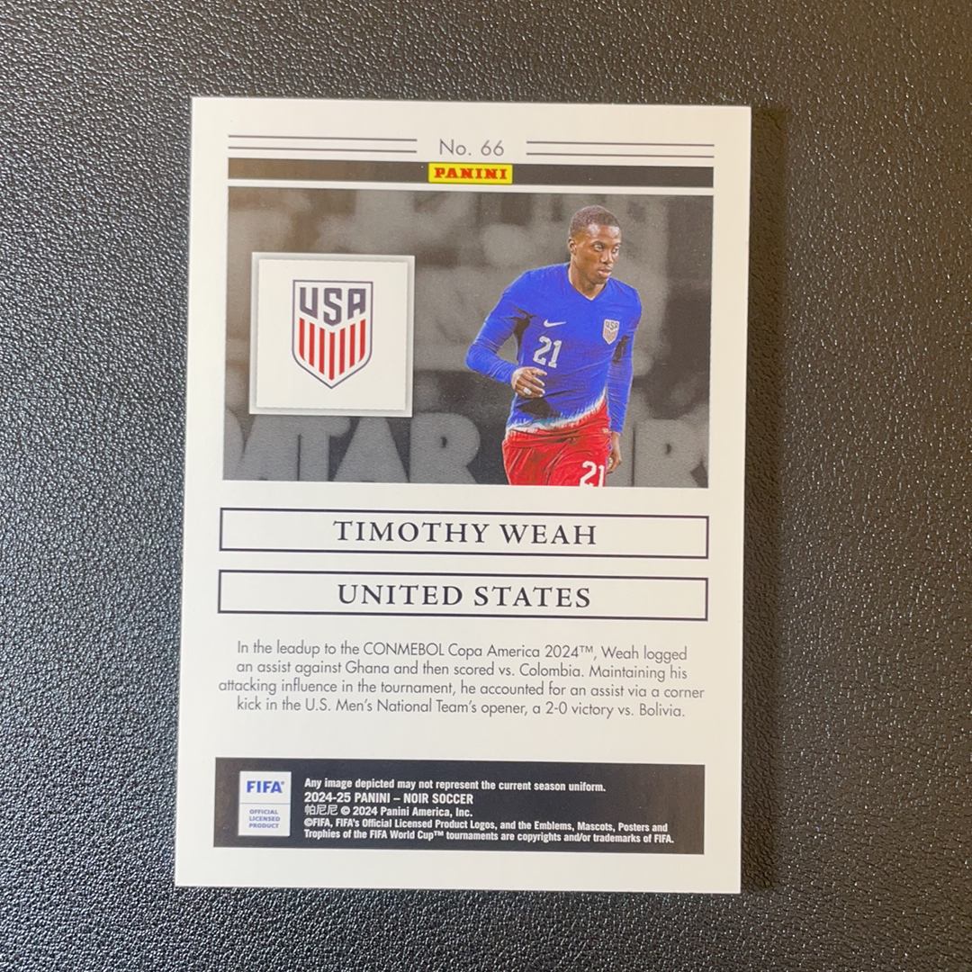 2024-25 Panini Noir 诺尔 足球 Timothy Weah 蒂莫西 维阿 小维阿 80/80编 尾编 正Base 厚卡 美国 尤文图斯 收藏 轻印-SY8032