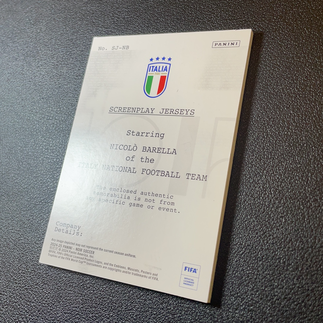 2024-25 Panini Noir Nicolò Barella 诺尔 尼科洛 巴雷拉 Screenplay 三窗 物料 55/65编 意大利  轻印-SY8032