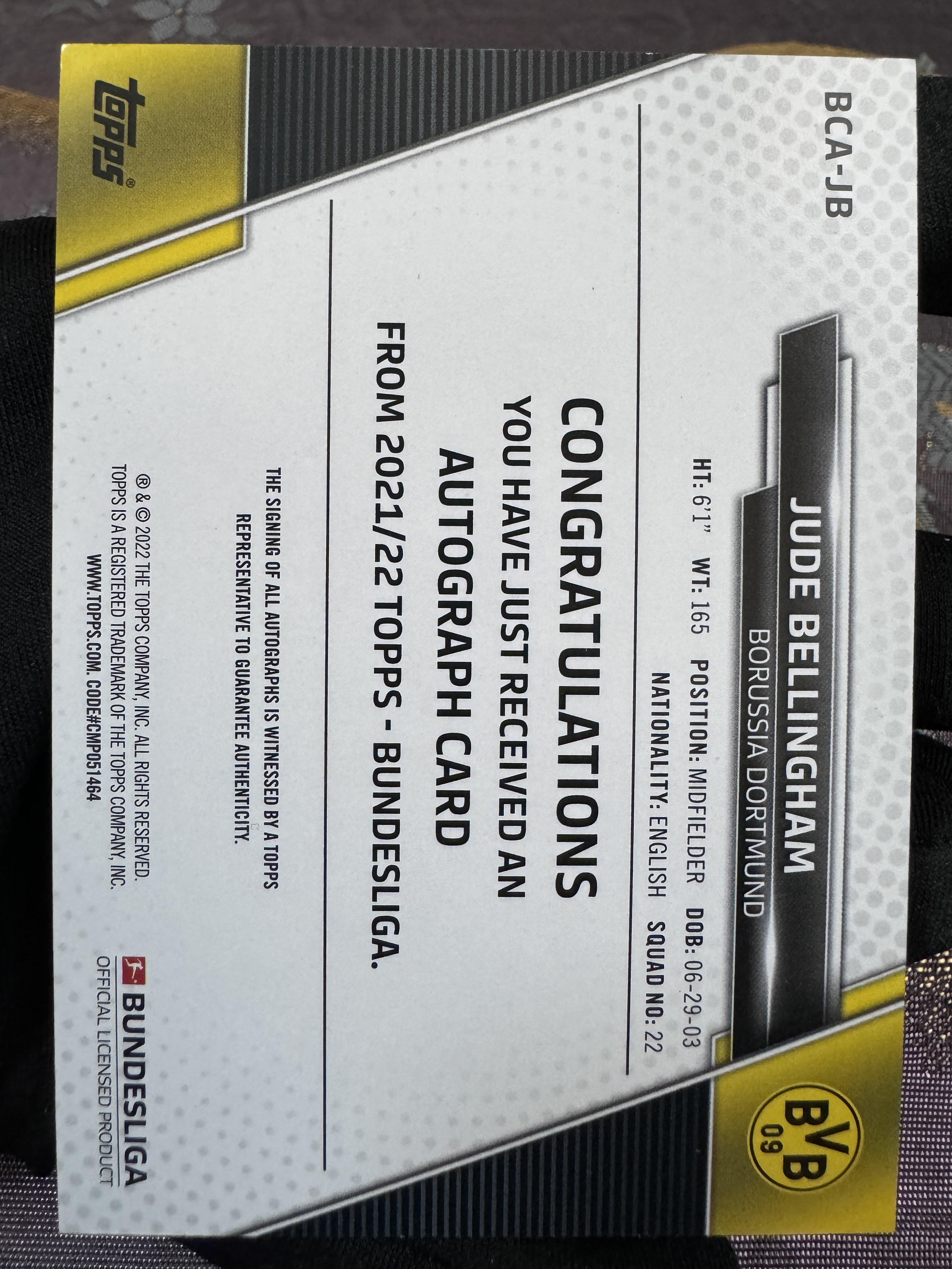2022 Topps UCC Jude Bellingham 德甲 UCC 多特蒙德 皇马 皇家马德里 英格兰 顶级中场 超级巨星 贝林厄姆 投资大热 银折签 签字 稀有 完美墨迹 卡品如图