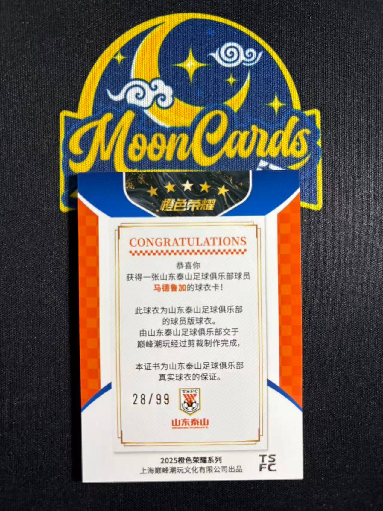 【梦卡拍卖】2025 巅峰潮玩 橙色荣耀 泰山队盒 山东鲁能 马德鲁加 球衣切割 物料 28/99编 #DD# 乐哥