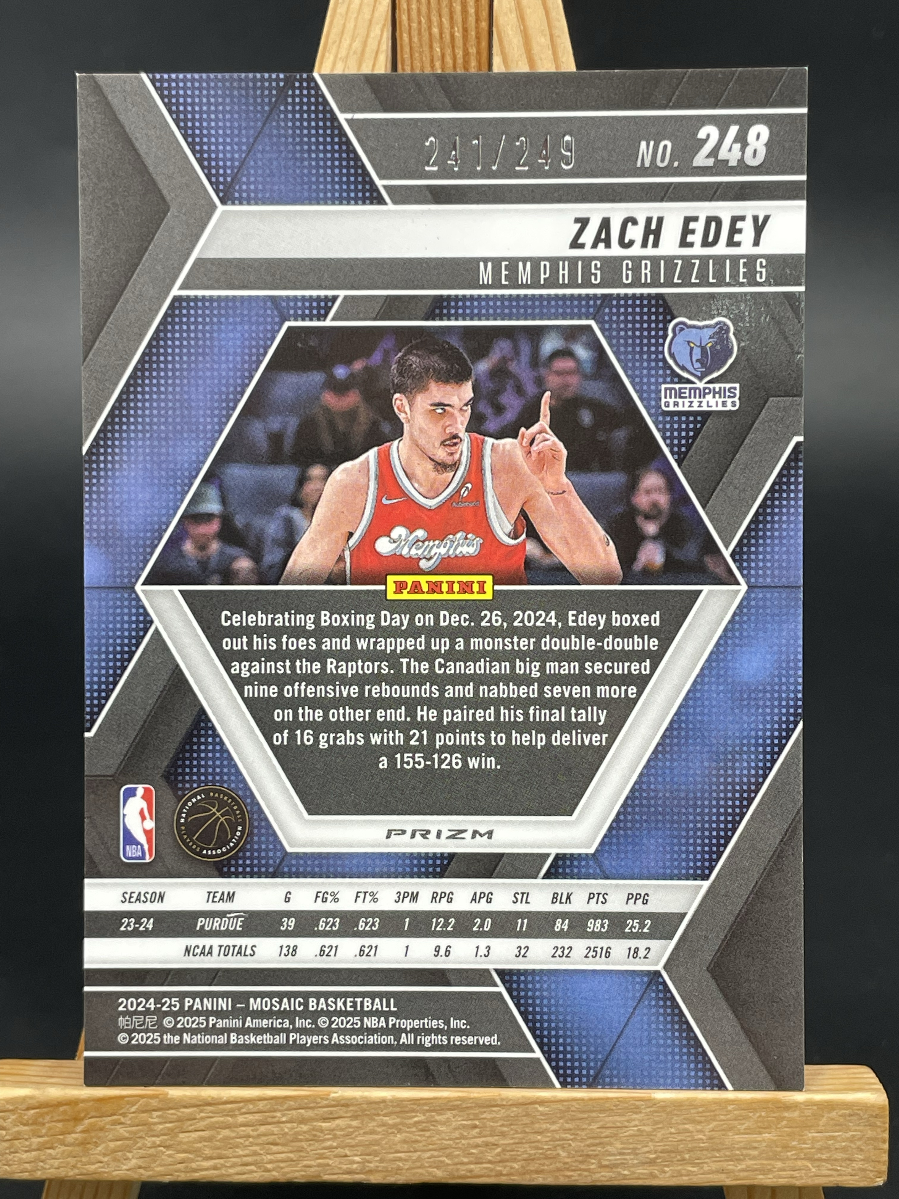 2024-25 Panini Mosaic Zach Edey RC 马赛克系列 扎克 伊迪 新秀 249编 橙折 base 投资收藏 【小哈拍卖-威03】