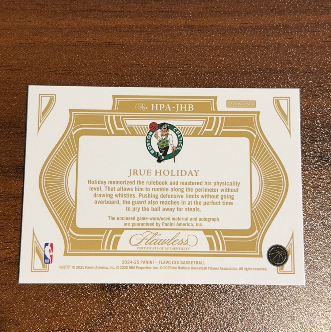 2023-24 Panini Flawless Jrue Holiday 凯尔特人 朱 霍乐迪 25编 银平行 双色暴力切割 球衣 物料 签字 卡签 完美签 落场切割 低编 HPA