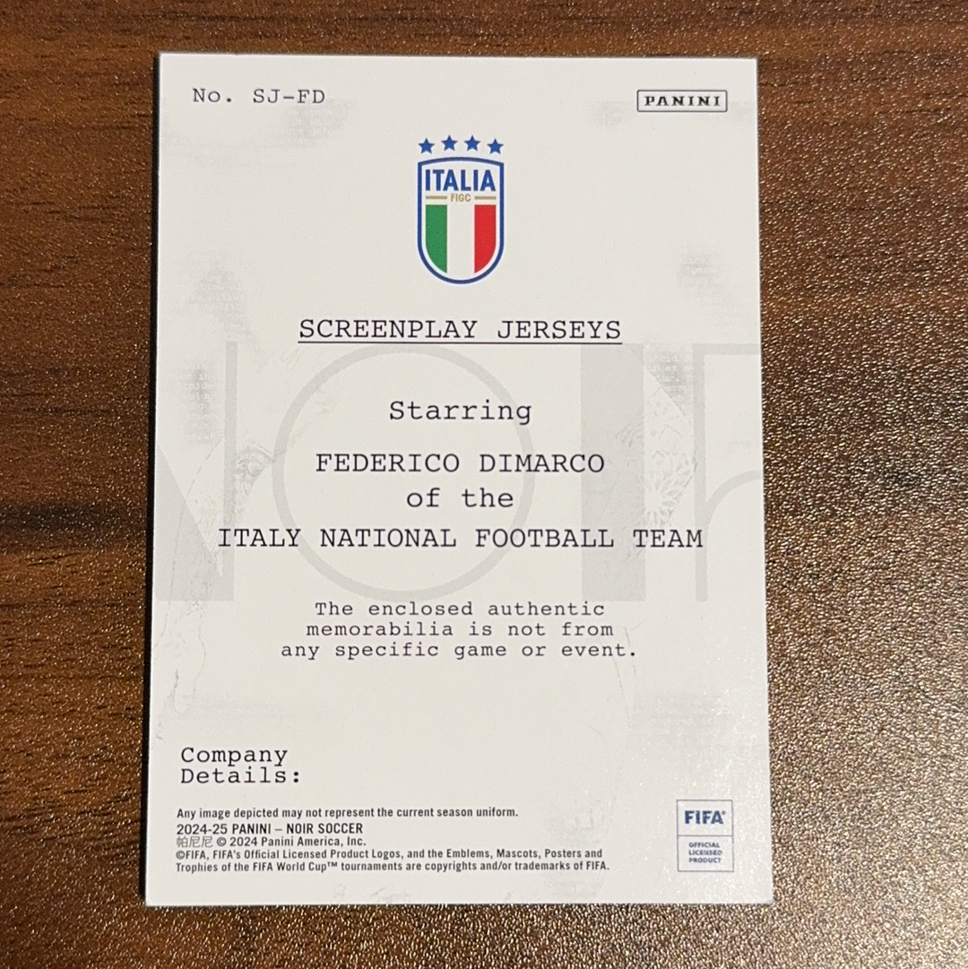 2024-25 Panini Noir Federico Dimarco 迪马尔科 意大利 Screenplay Jerseys 剧本球衣 41/55编 银平行 三窗切割