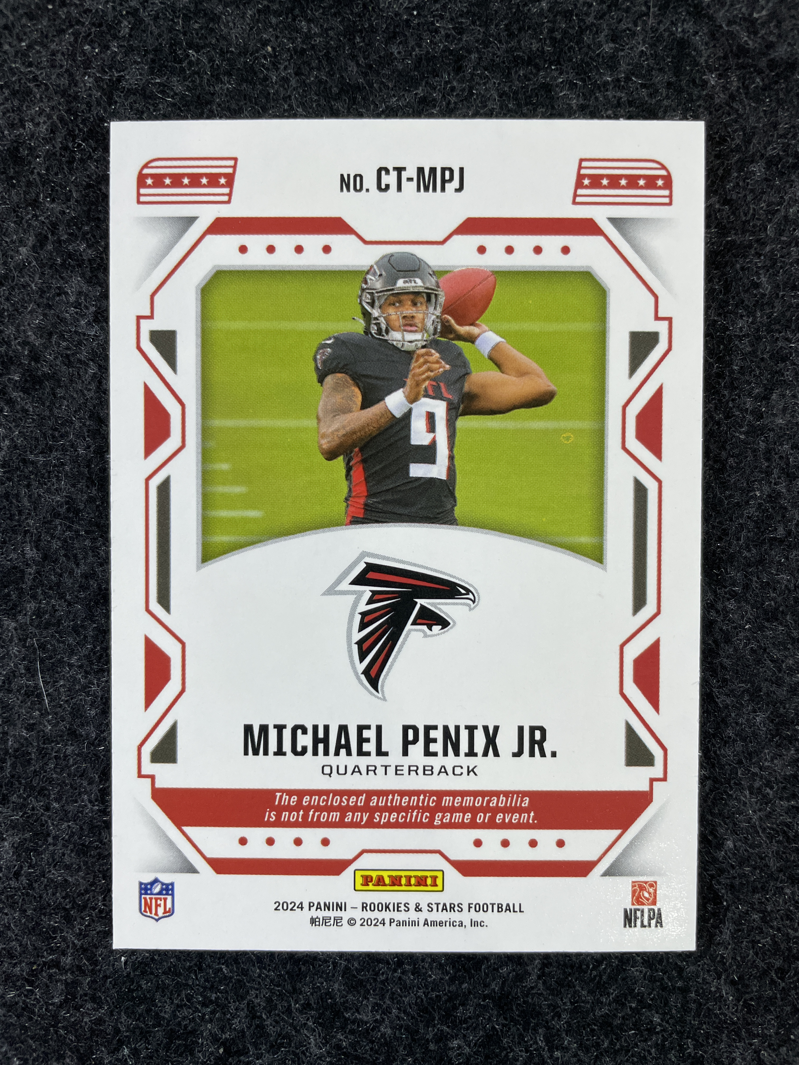 【阿木代拍254医生】2024 Panini Rookie & Stars 橄榄球NFL RC新秀 Falcons猎鹰 Michael Penix Jr. 佩尼克斯 /399编 双窗双色球衣切割