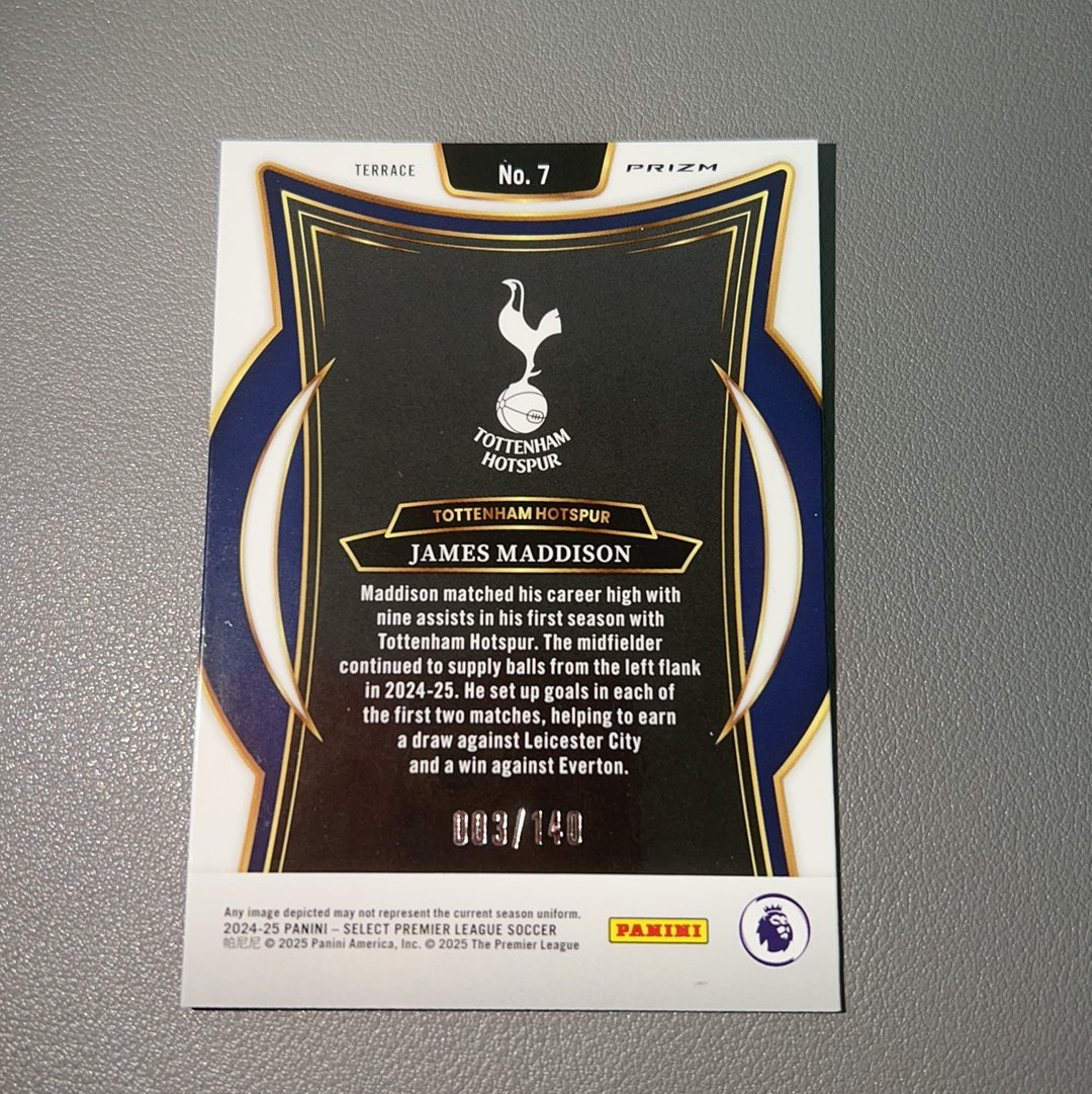 2024-25 Panini Select James Maddison 英超 se 热刺 詹姆斯 麦迪逊 一级 003/140编 紫折 折射 卡品如图 收藏必备