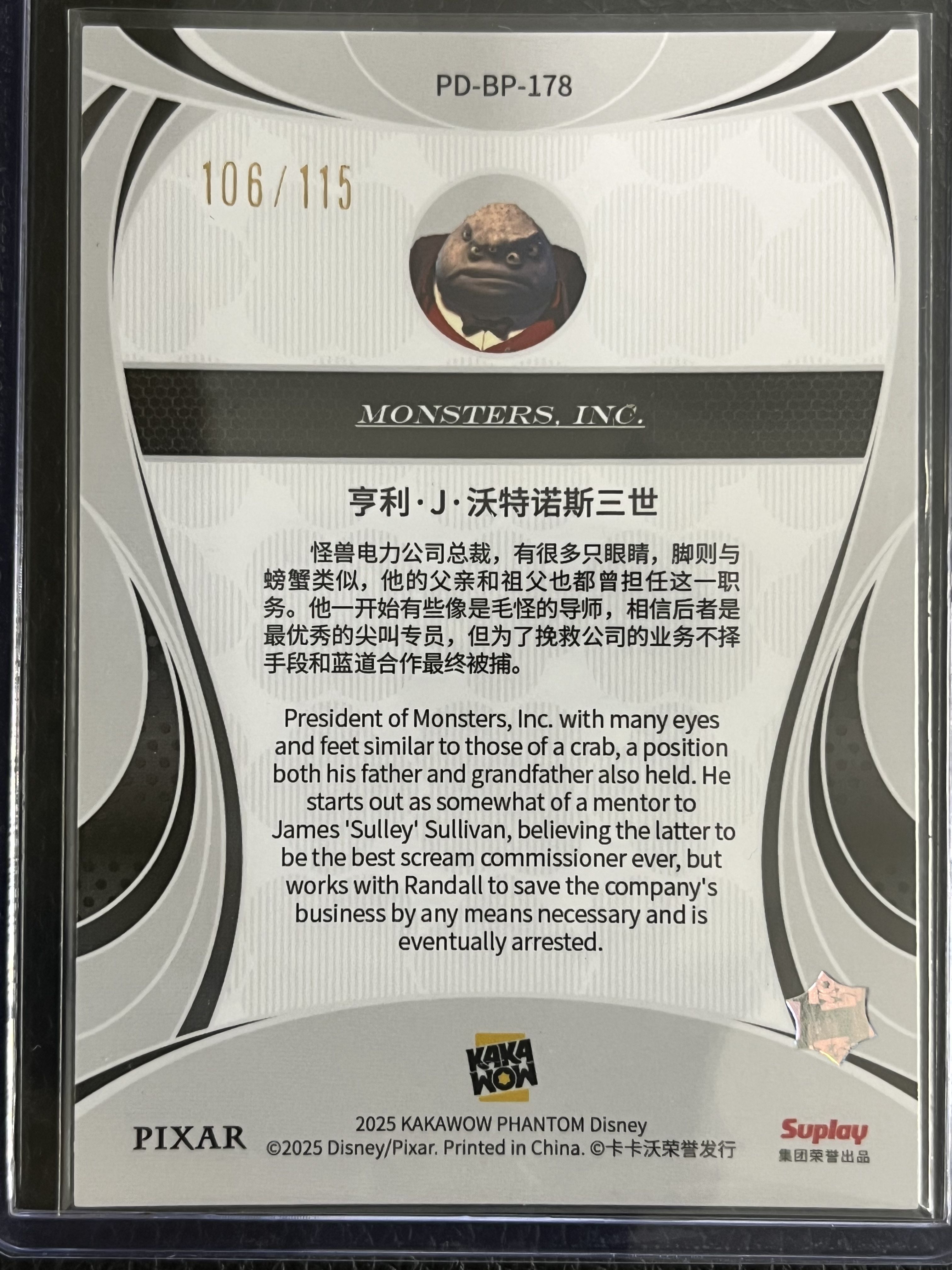 卡卡沃 2025 KAKAWOW PHANTOM 迪士尼系列收藏卡 基础卡-紫 yucM10 106/115编 亨利·J·沃特诺斯三世 Henry J. Waternoose III