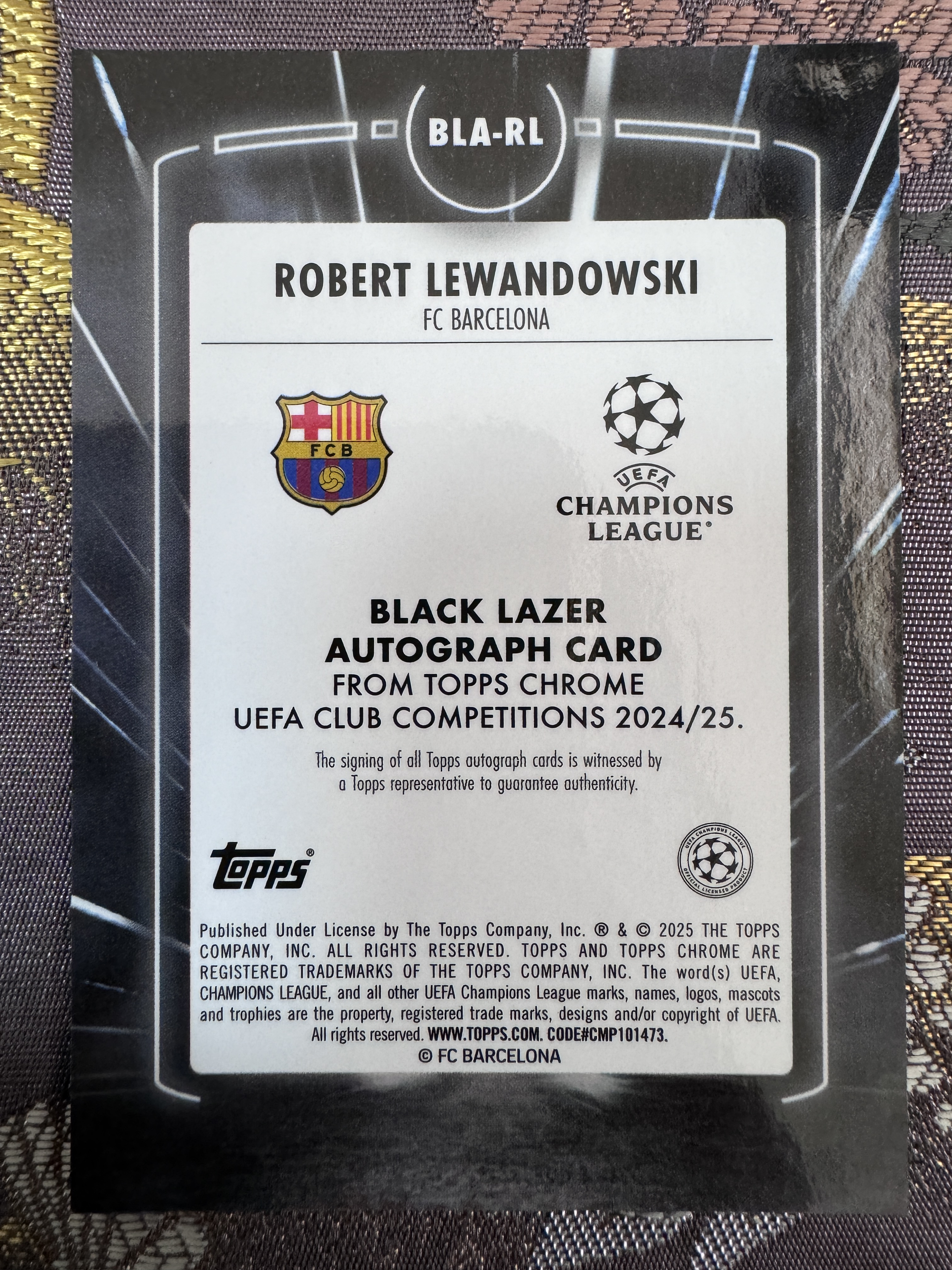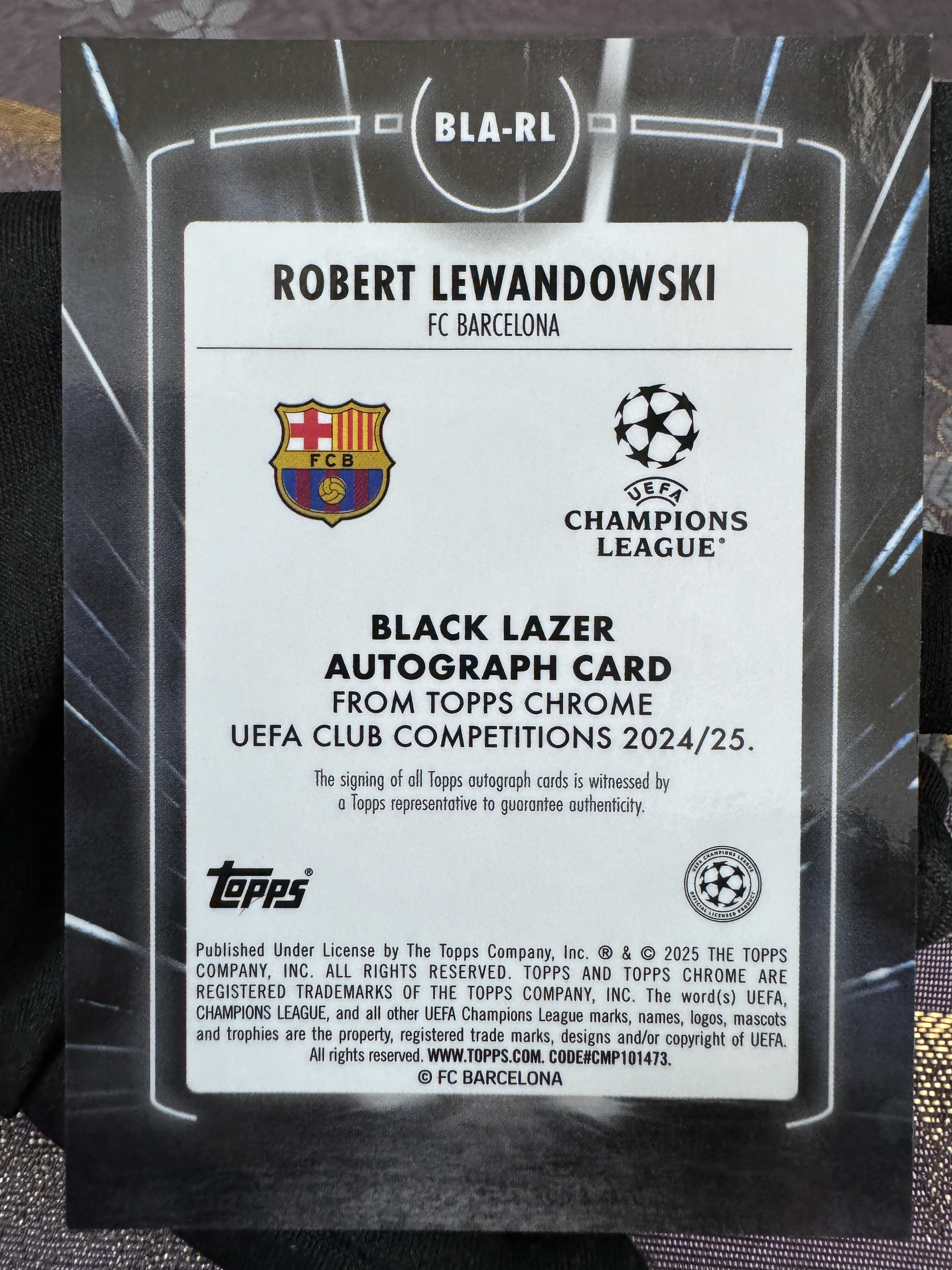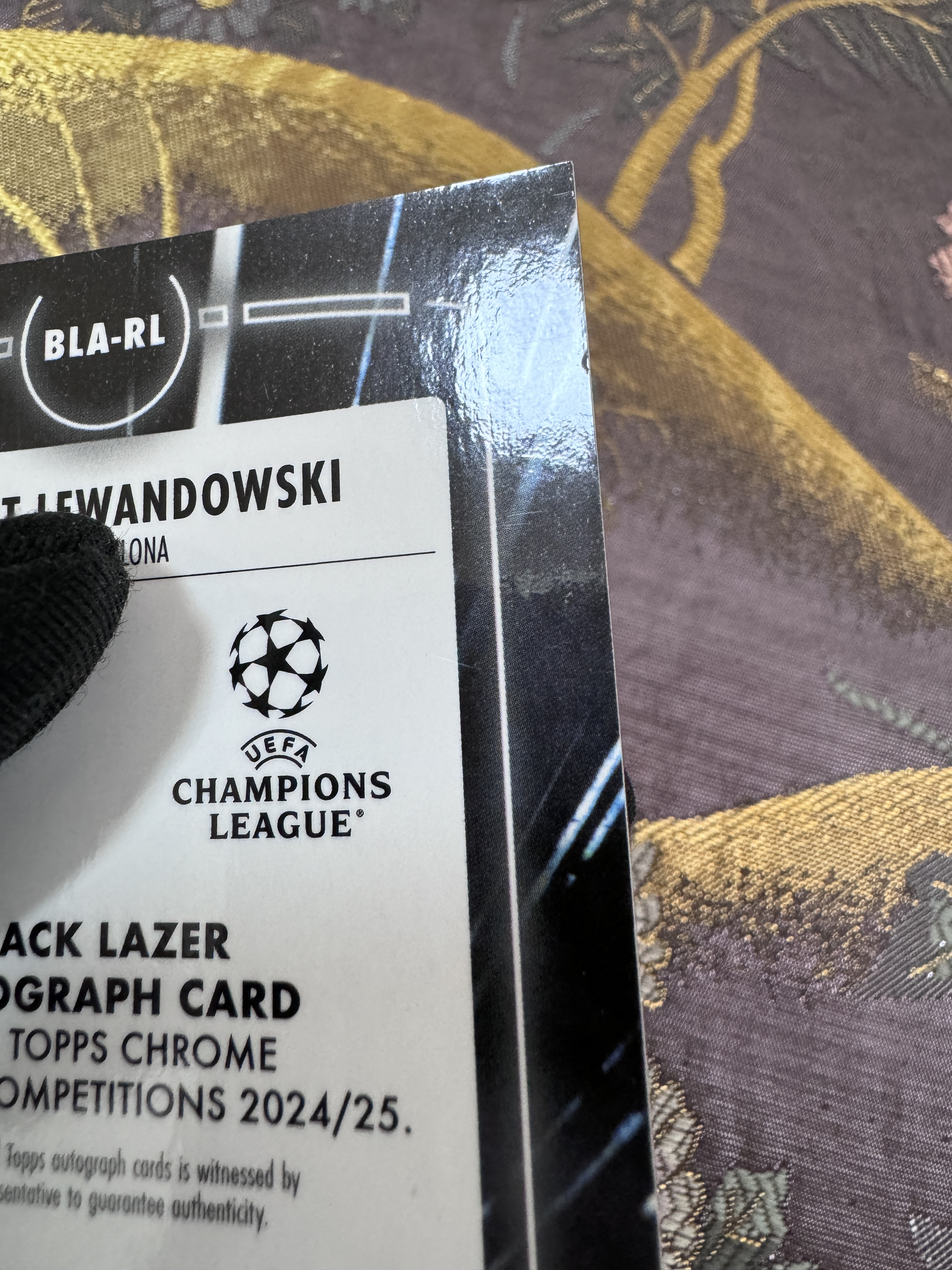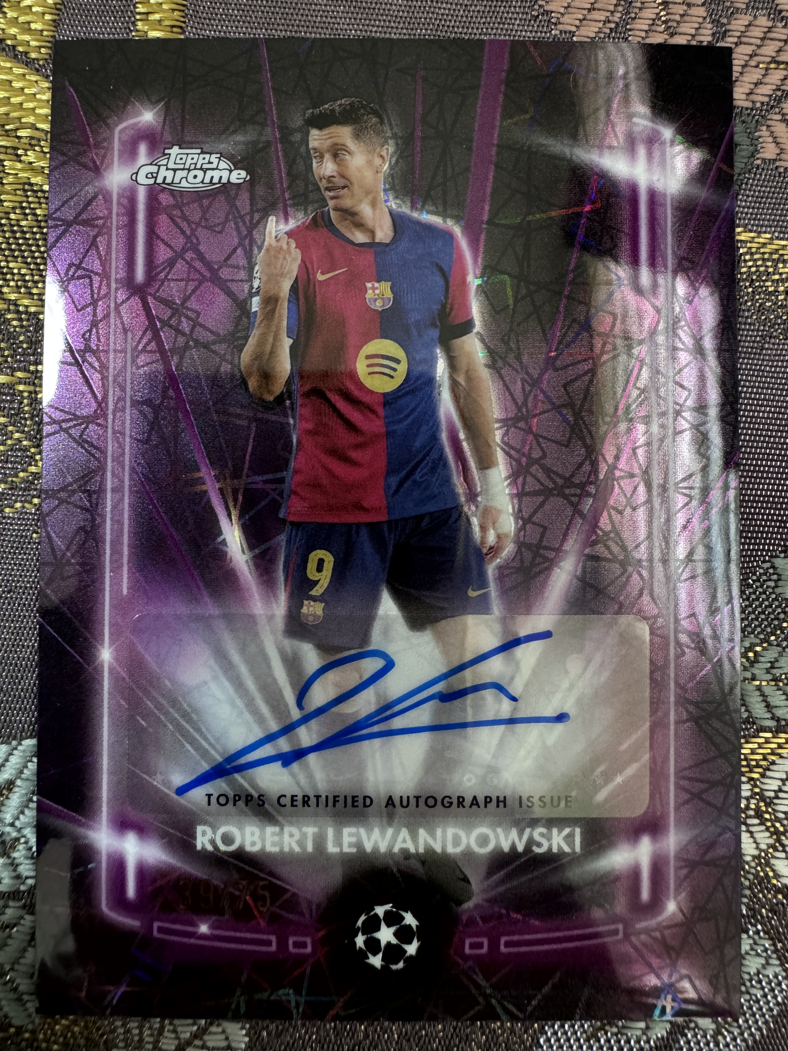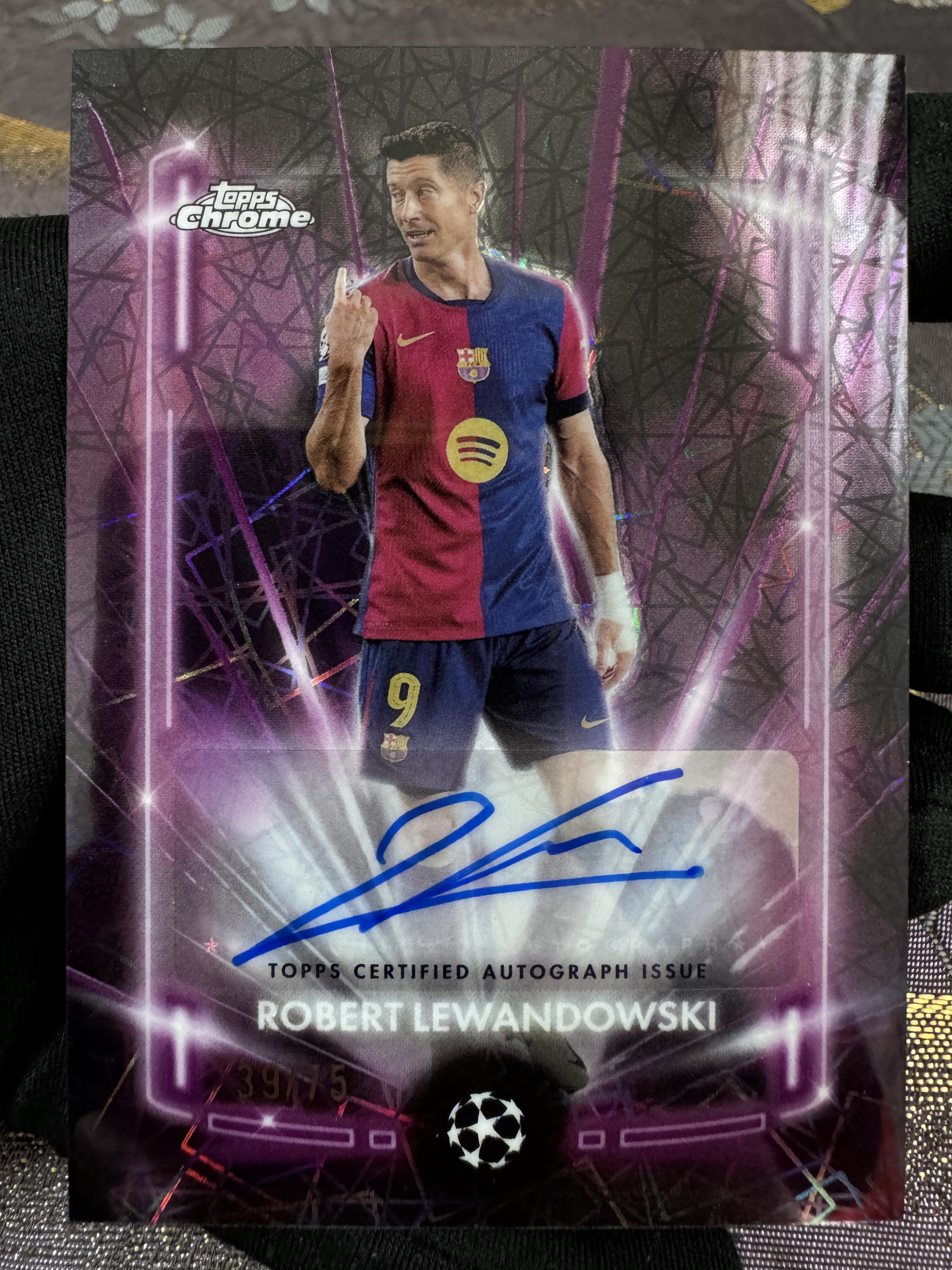 2025 Topps Chrome Robert Lewandowksi 欧冠 chrome 巴萨 巴塞罗那 拜仁 超级巨星 莱万多夫斯基 粉镭射 激光签 39/75编 签字 稀有 完美墨迹 实卡精美