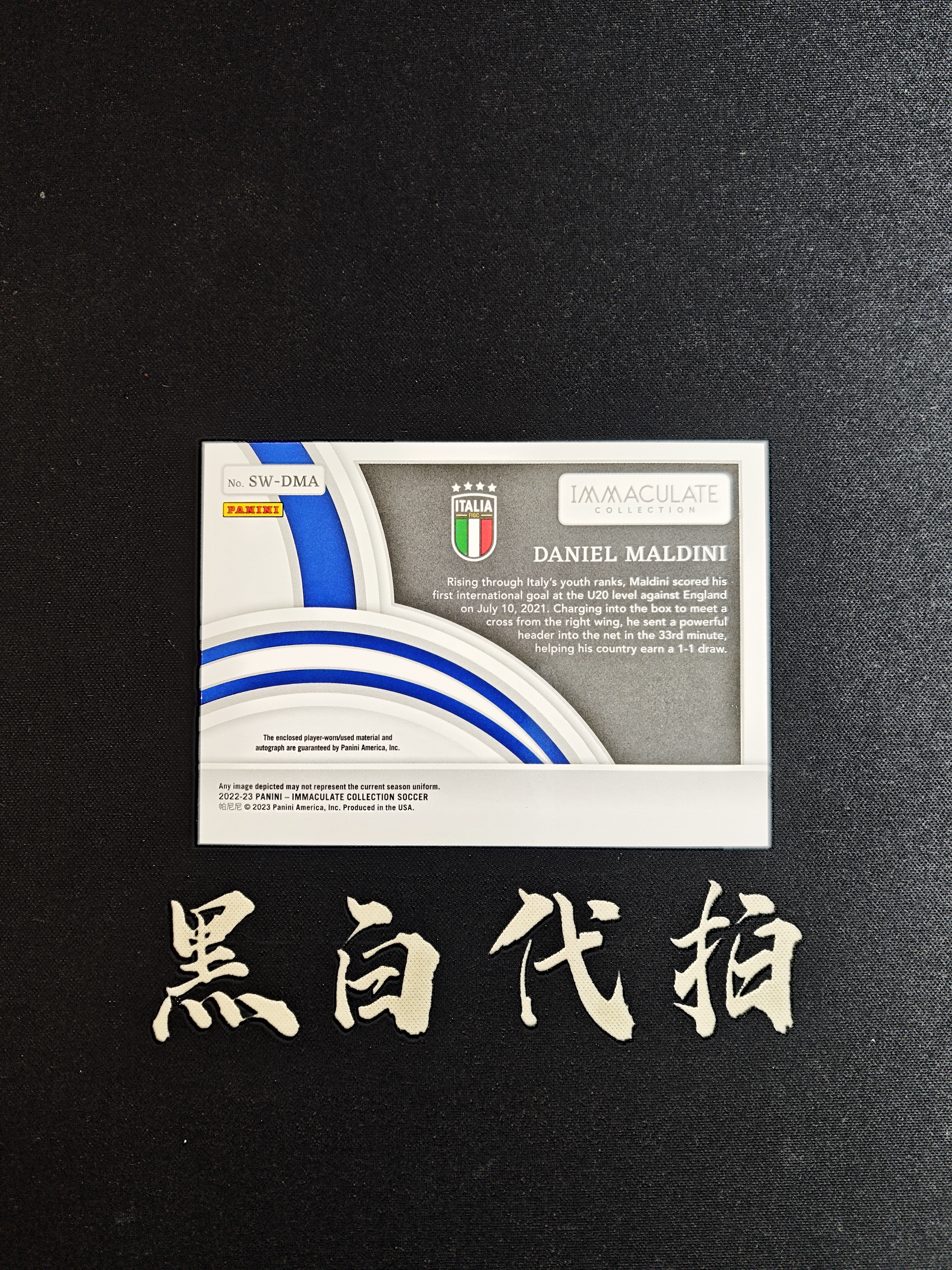 2022-23 Panini Immaculate Daniel Maldini 爱咪咪 丹尼尔 马尔蒂尼 意大利中场 AC米兰 亲穿球衣物料 13/99编 签字 墨迹如图 卡品如图【CC06】