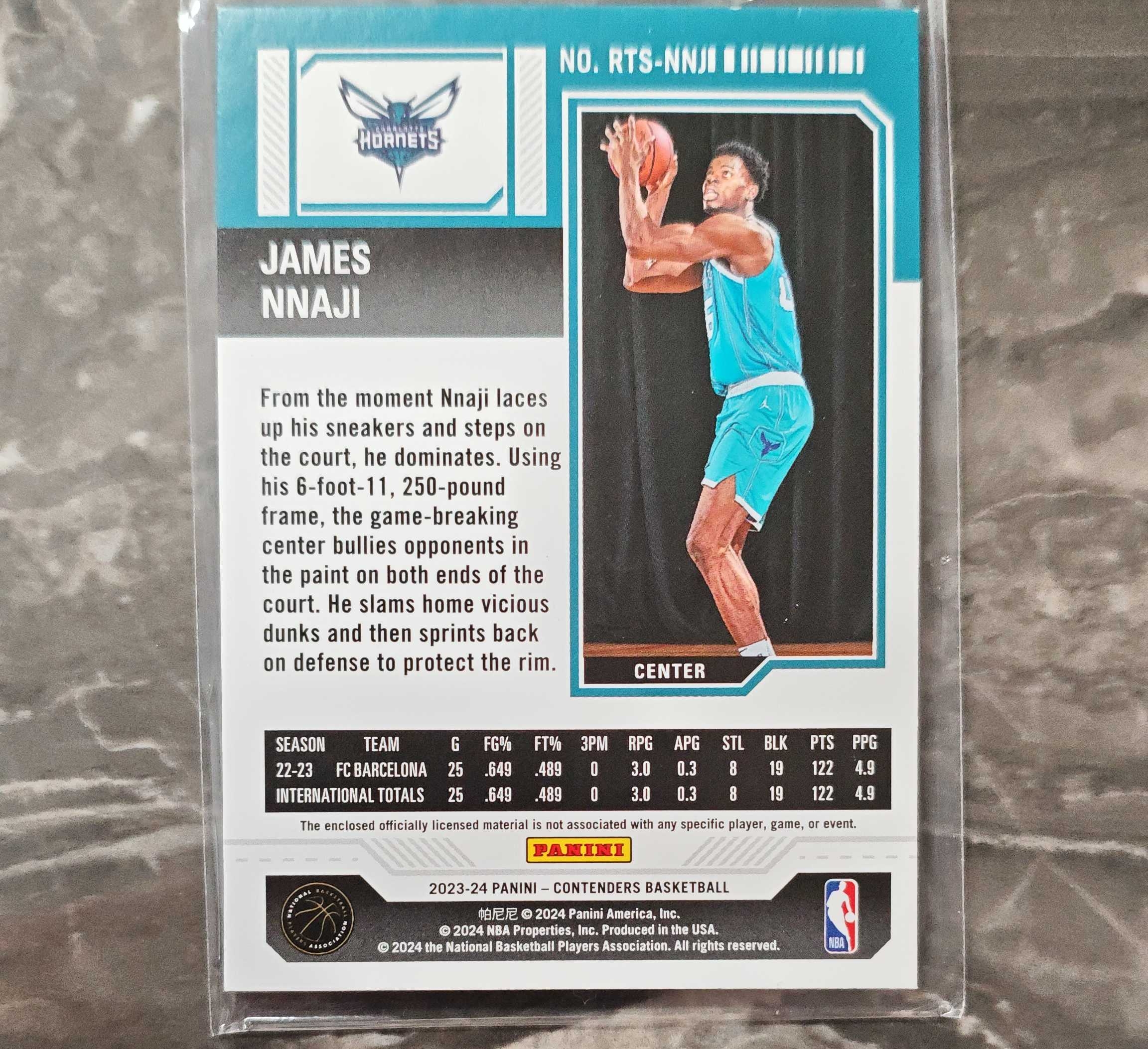 2023-24 Panini Contenders James Nnaji RC NBA 球票 詹姆斯 纳吉 黄蜂 新秀 小窗物料 球衣切割 实卡精美 瑕疵如图 不退不换 收藏 专收必备V11