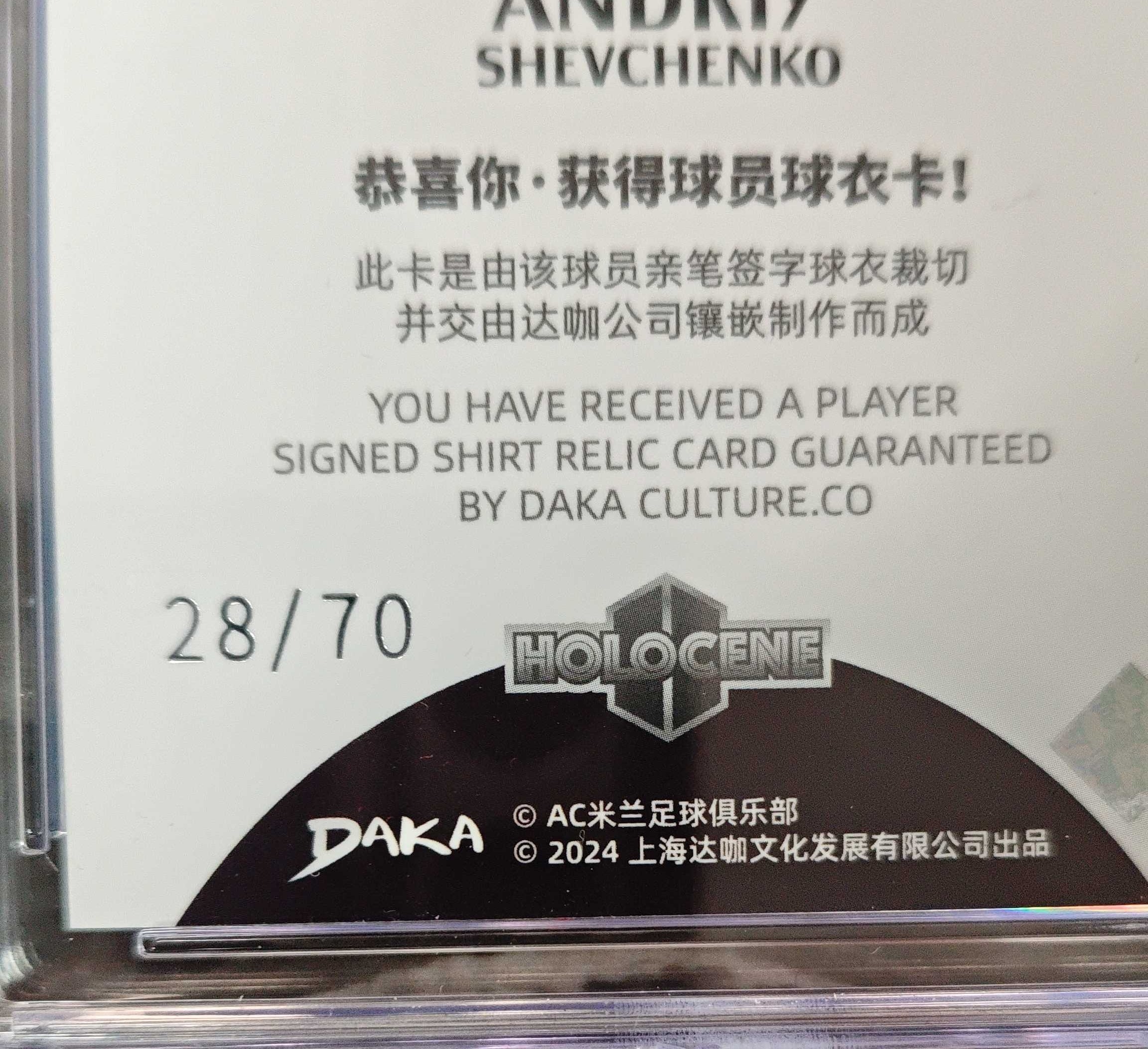 2024 DAKA HOLOCENE Andriy Shevchenko 达咖 AC米兰队盒 安德烈 舍甫琴科 小窗物料 CGC评级卡 9分 28/70编 实卡精美 瑕疵如图 不退不换 收藏必备V11