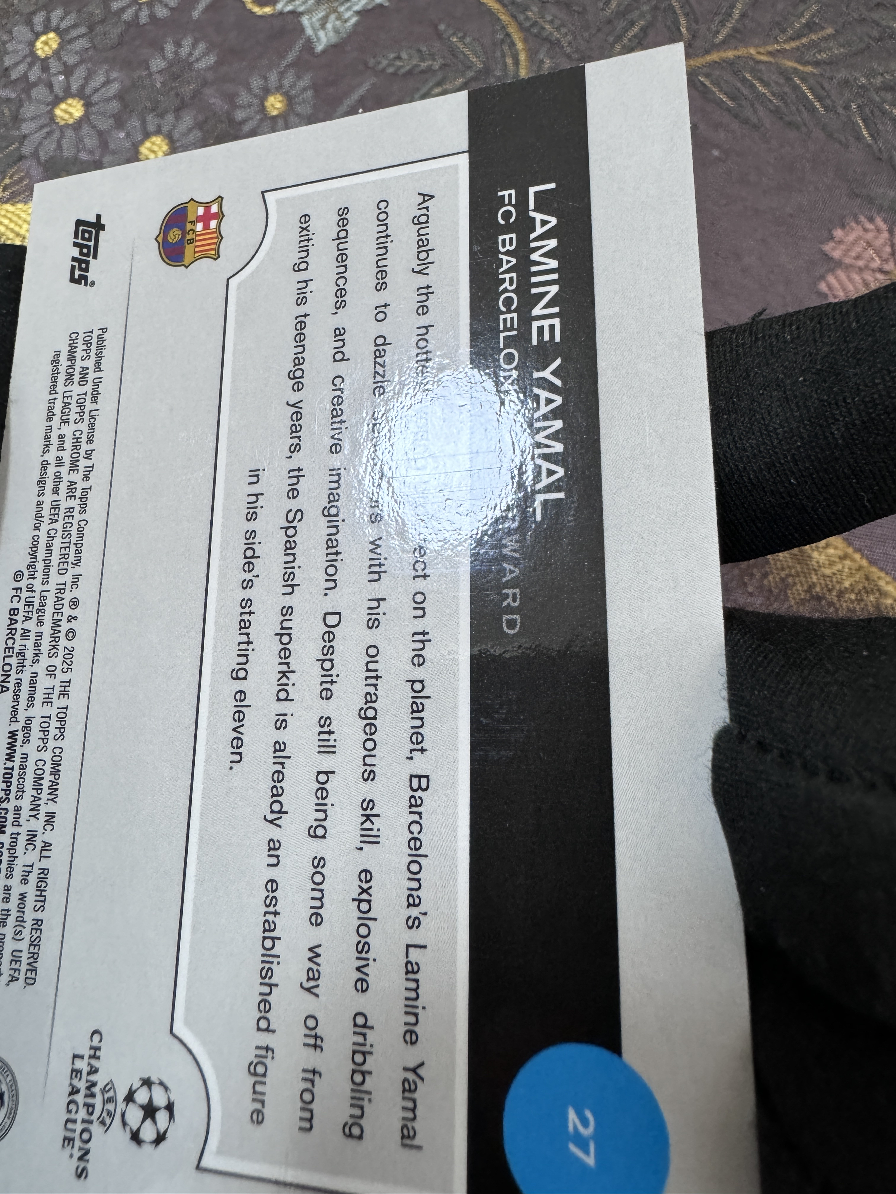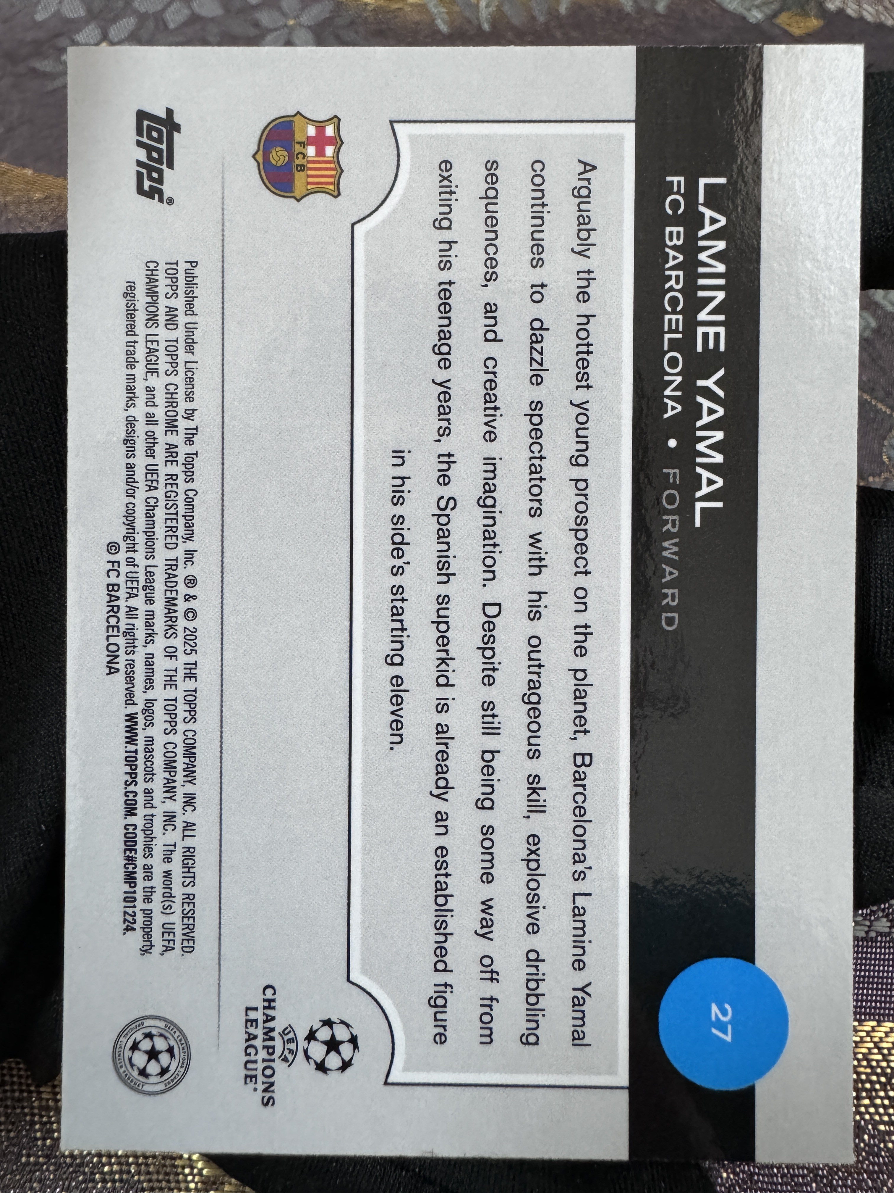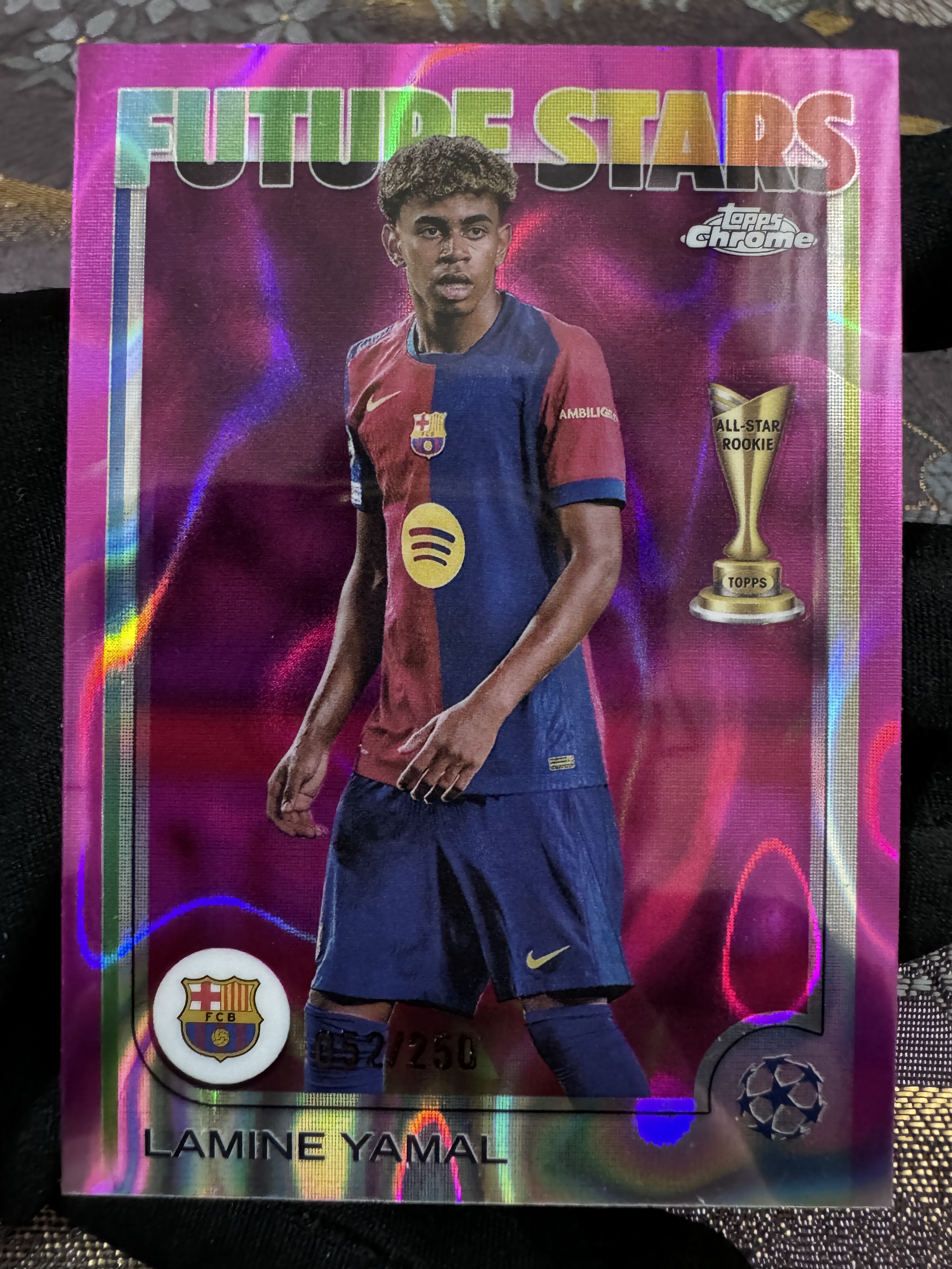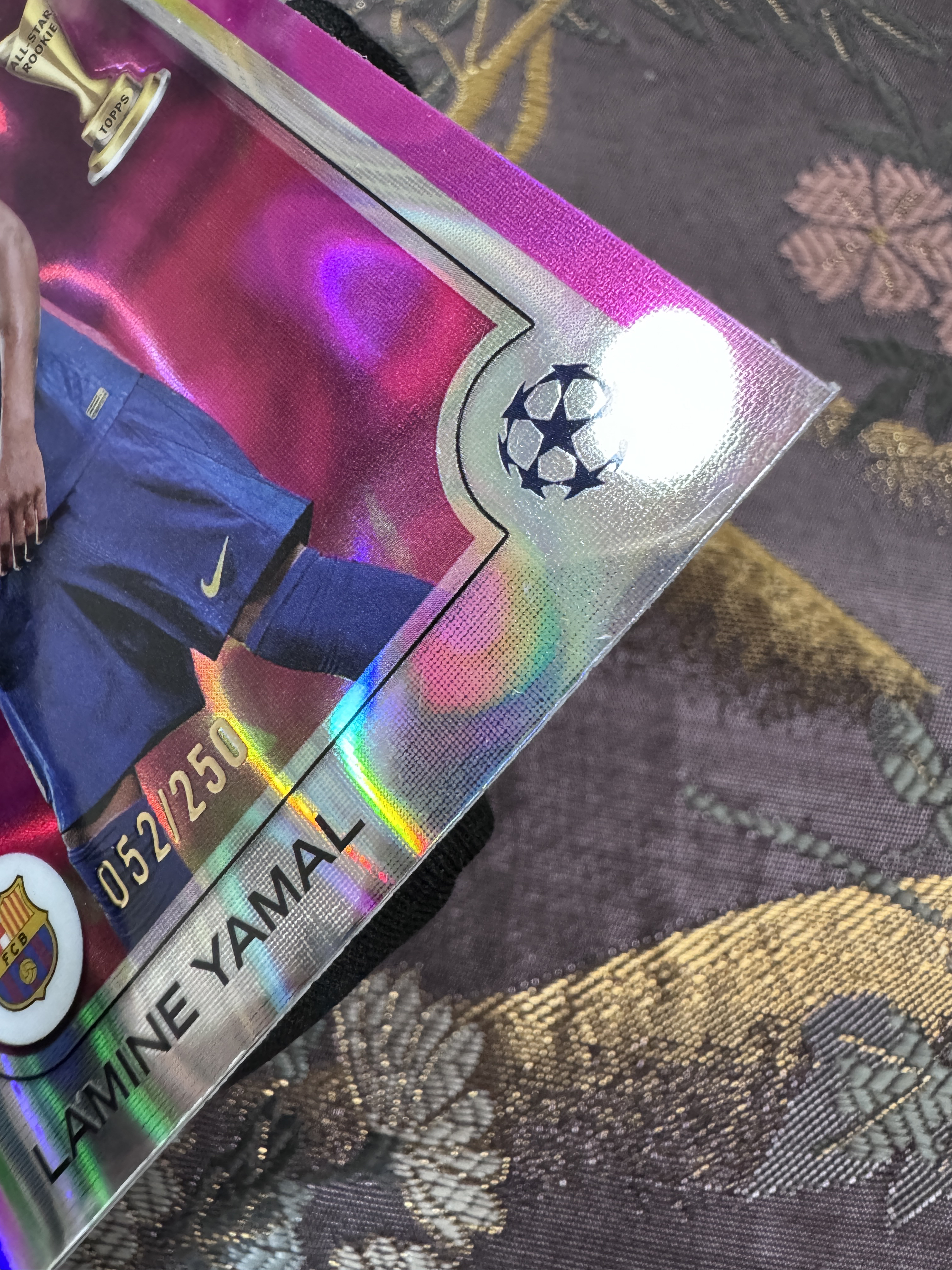 2025 Topps Chrome Lamine Yamal 欧冠 chrome 巴萨 巴塞罗那 西班牙 欧洲杯冠军 超级小妖 当红炸子鸡 亚马尔 投资大热 粉波纹 052/250编 稀有 卡品如图