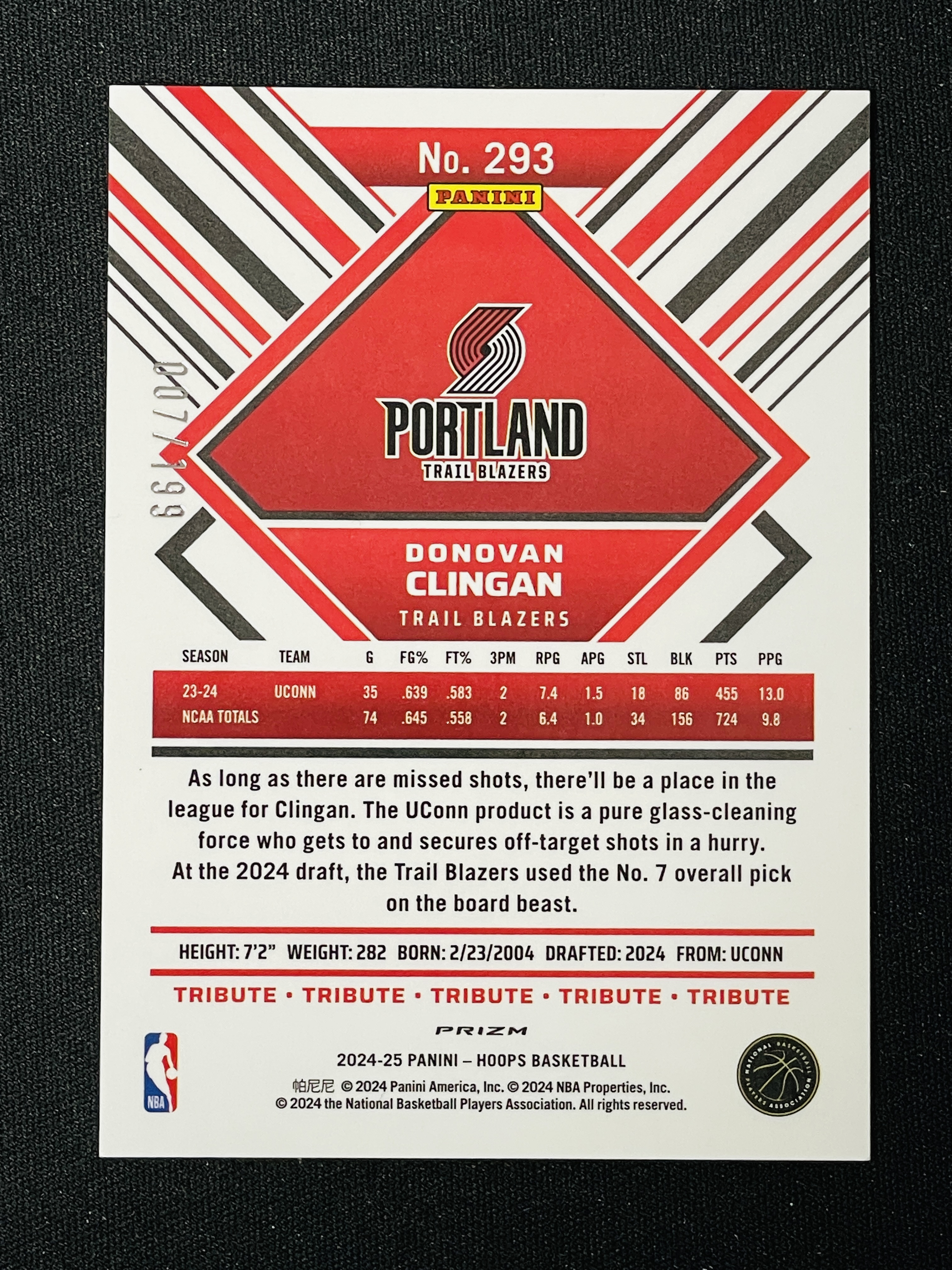 2024-25 Panini Hoops Donovan Clingan RC 【飞飞代卖】开拓者 新秀 多诺万 克林根 几何 特卡 橙折 199编 折射 专收凑套必备