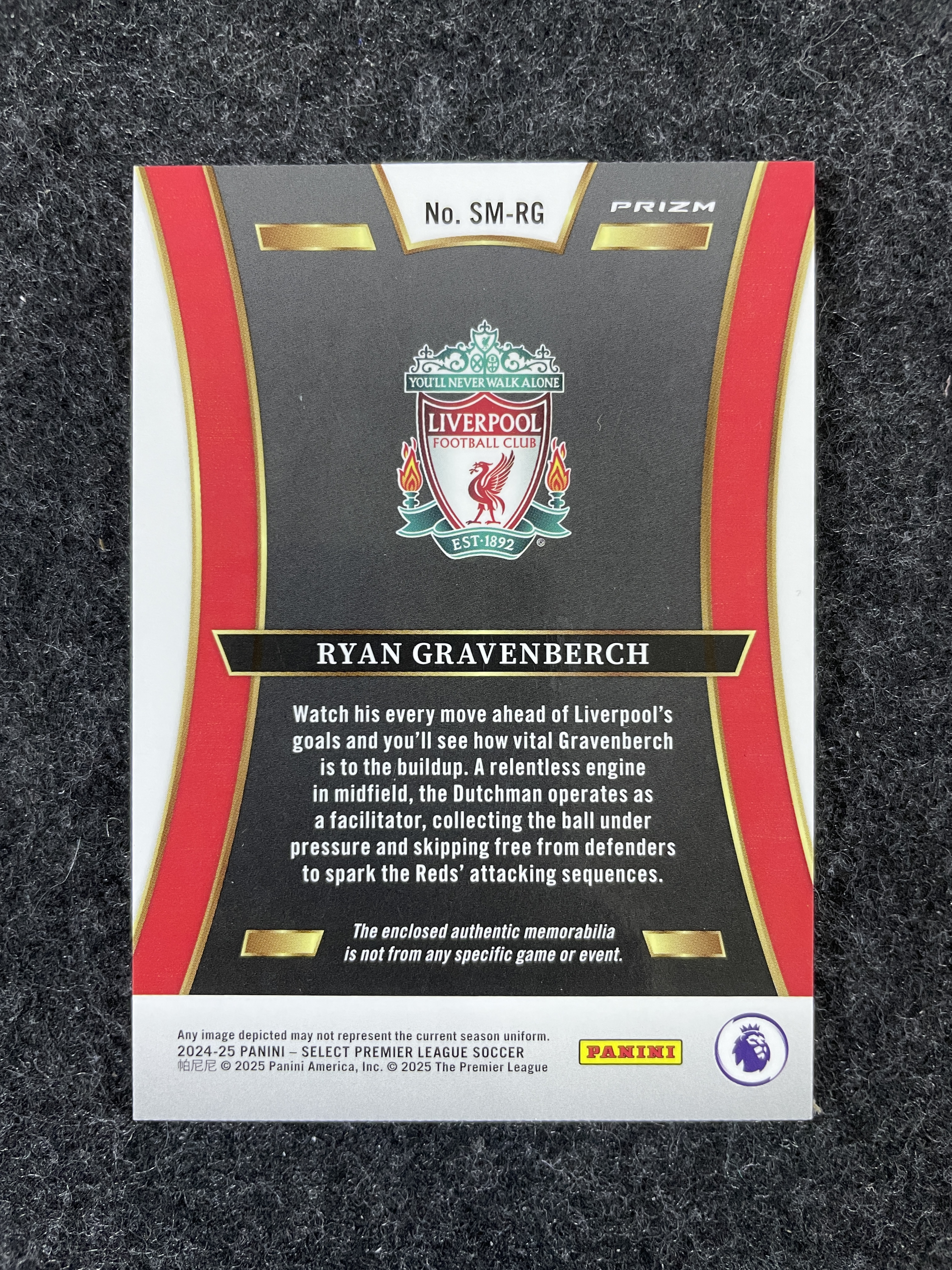 【阿木代拍254栋】2024-25 Panini Select 英超 利物浦 Ryan Gravenberch 赫拉芬贝赫 格拉文贝尔奇 银折 球衣切割 实物物料