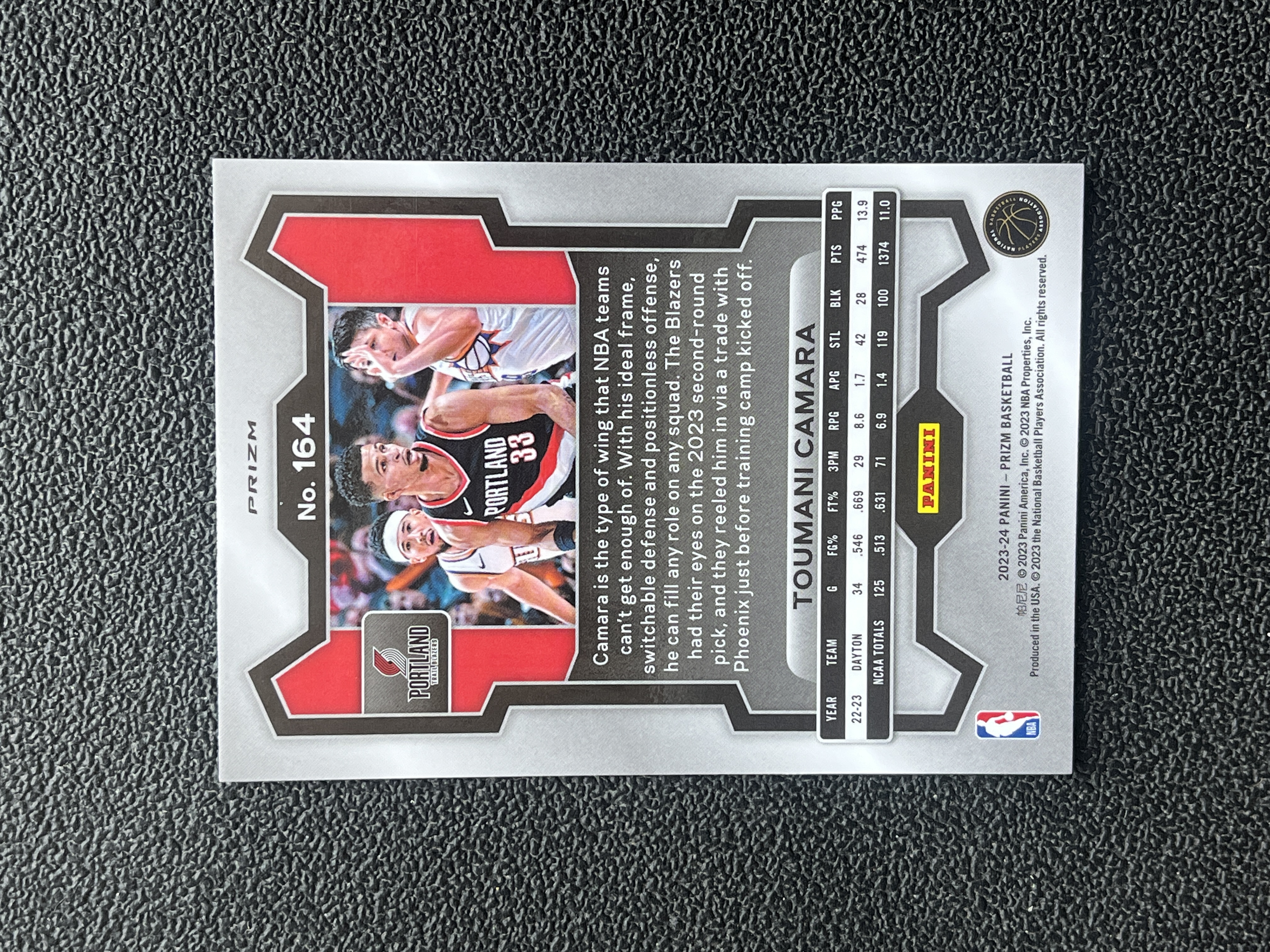 2023-24 Panini Prizm Toumani Camara RC 【艾比拍卖】 开拓者队 新秀 卡马拉 PZ系列 银折 折射 专收必备 卡品如图 向阳