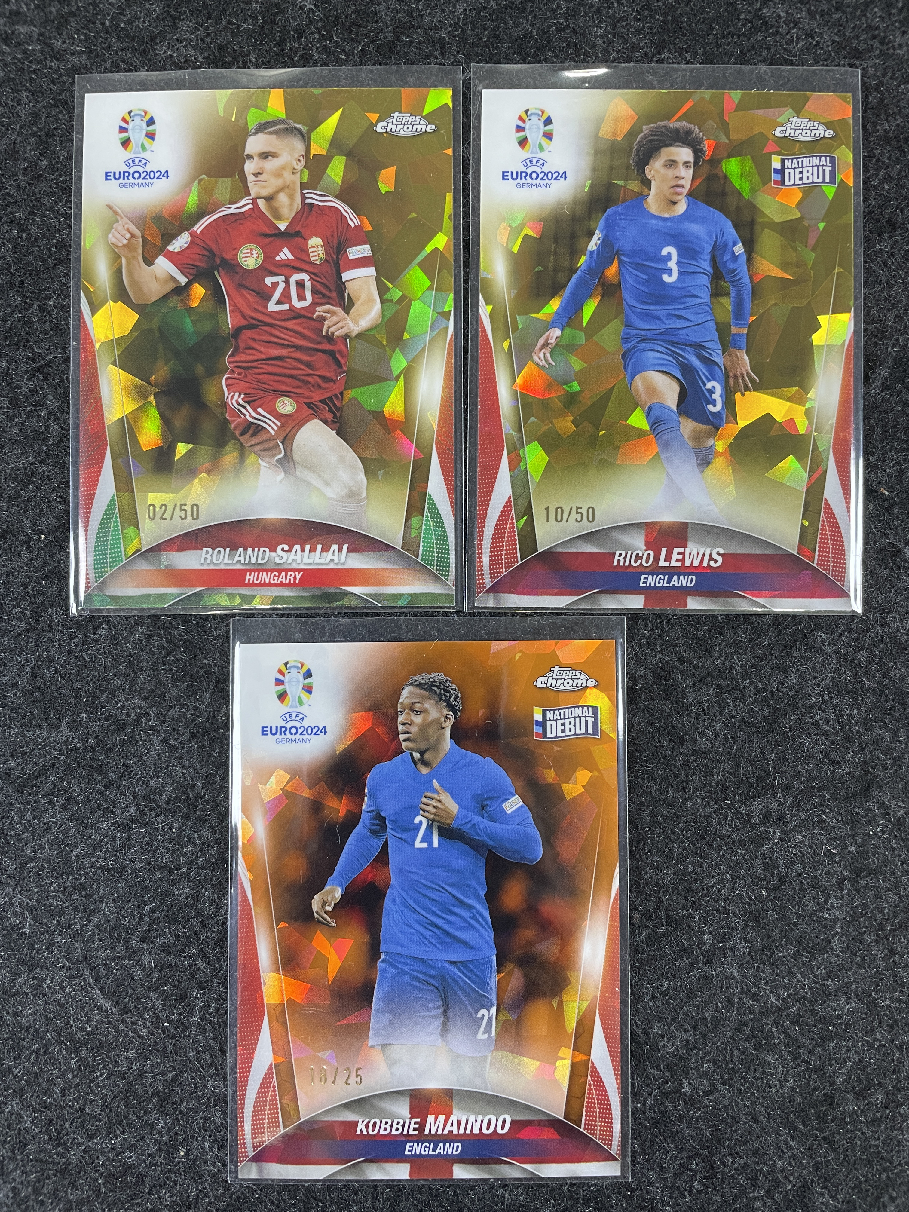 【阿木代拍254栋】2024 Topps Euro Chrome 欧洲杯蓝宝石 ND首秀新秀 英格兰 梅努 里科 刘易斯 匈牙利 Sallai 绍洛伊 金碎冰/50编 橙碎冰/25编 曼城 曼联