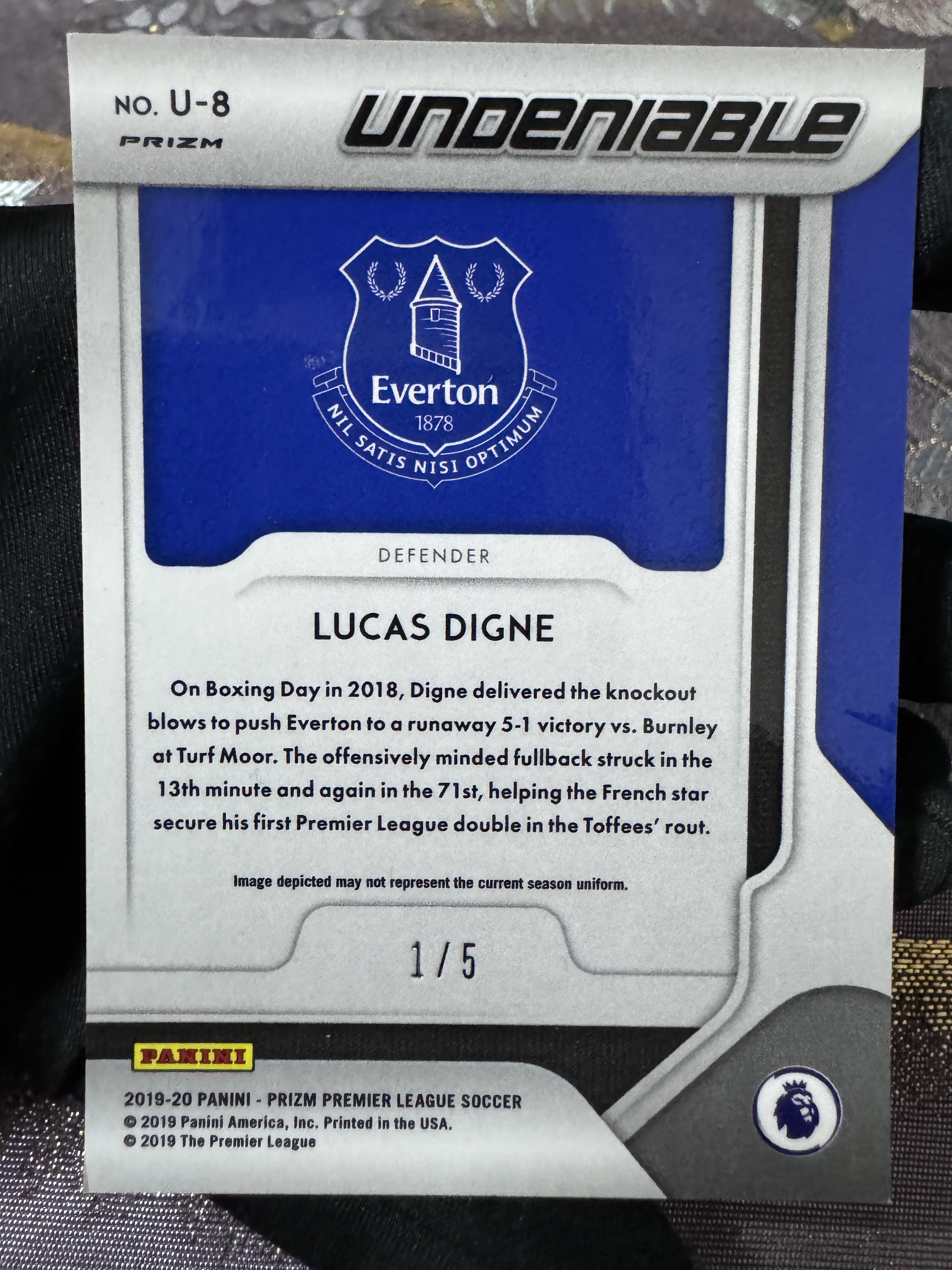 2019 Panini Prizm Lucas Digne 英超 Prizm PZ 埃弗顿 阿斯顿维拉 法国 超级巨星 迪涅 投资大热 大比例 爆金折 1/5编 首编 超低编 稀有 卡品如图