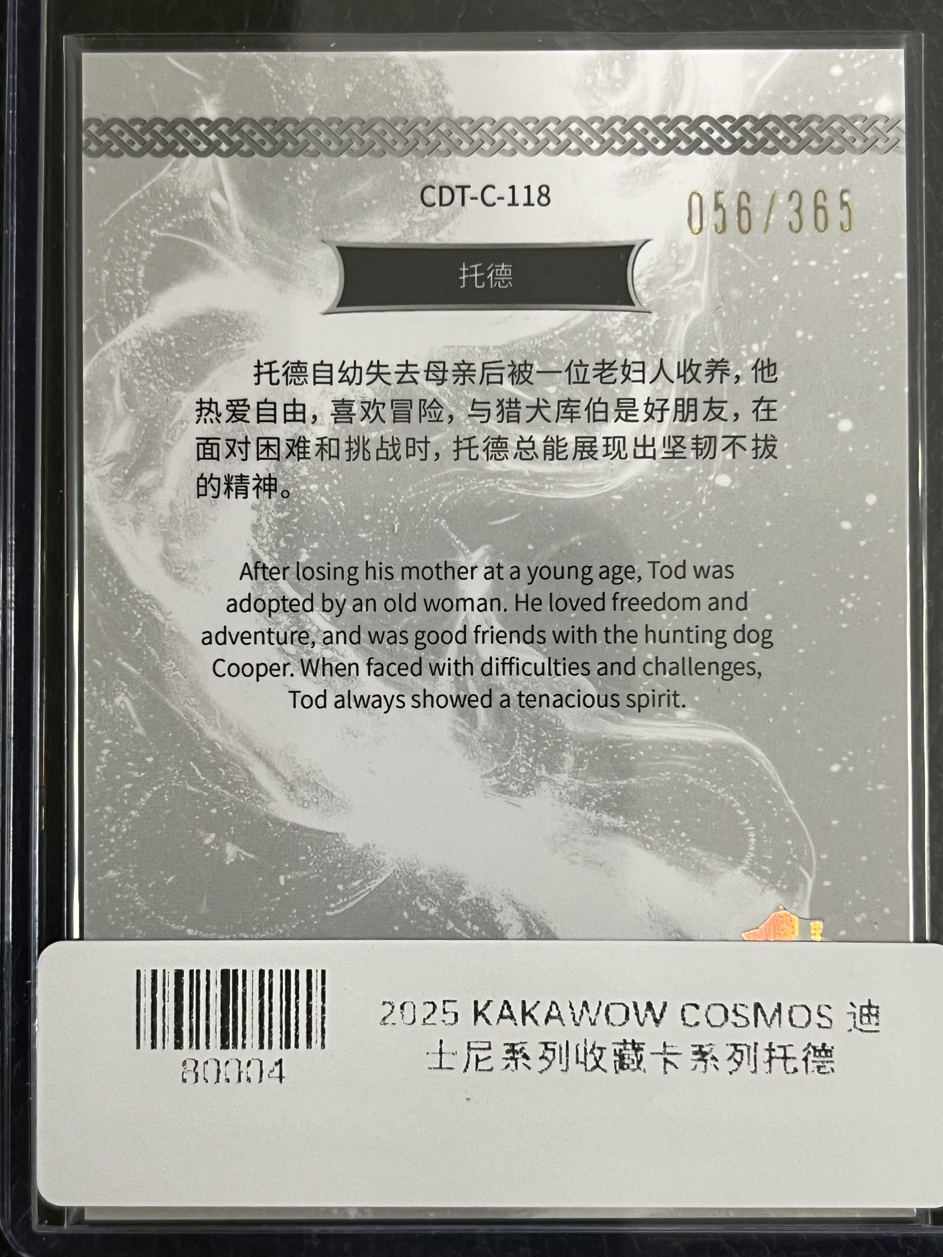 卡卡沃 2025 COSMOS 迪士尼系列收藏卡 COSMOS珍藏卡   螺XWM17   56/365编 托德	Tod