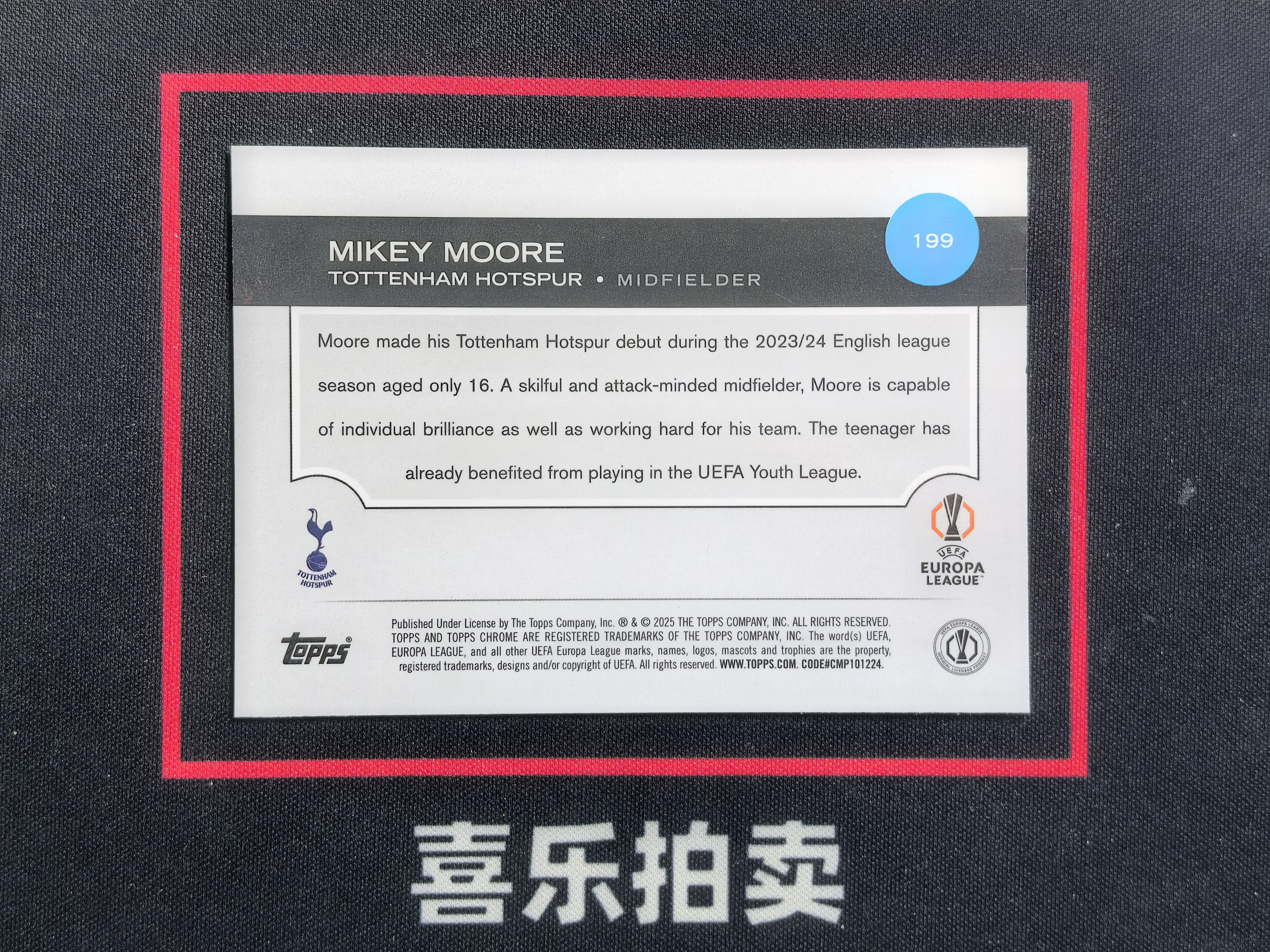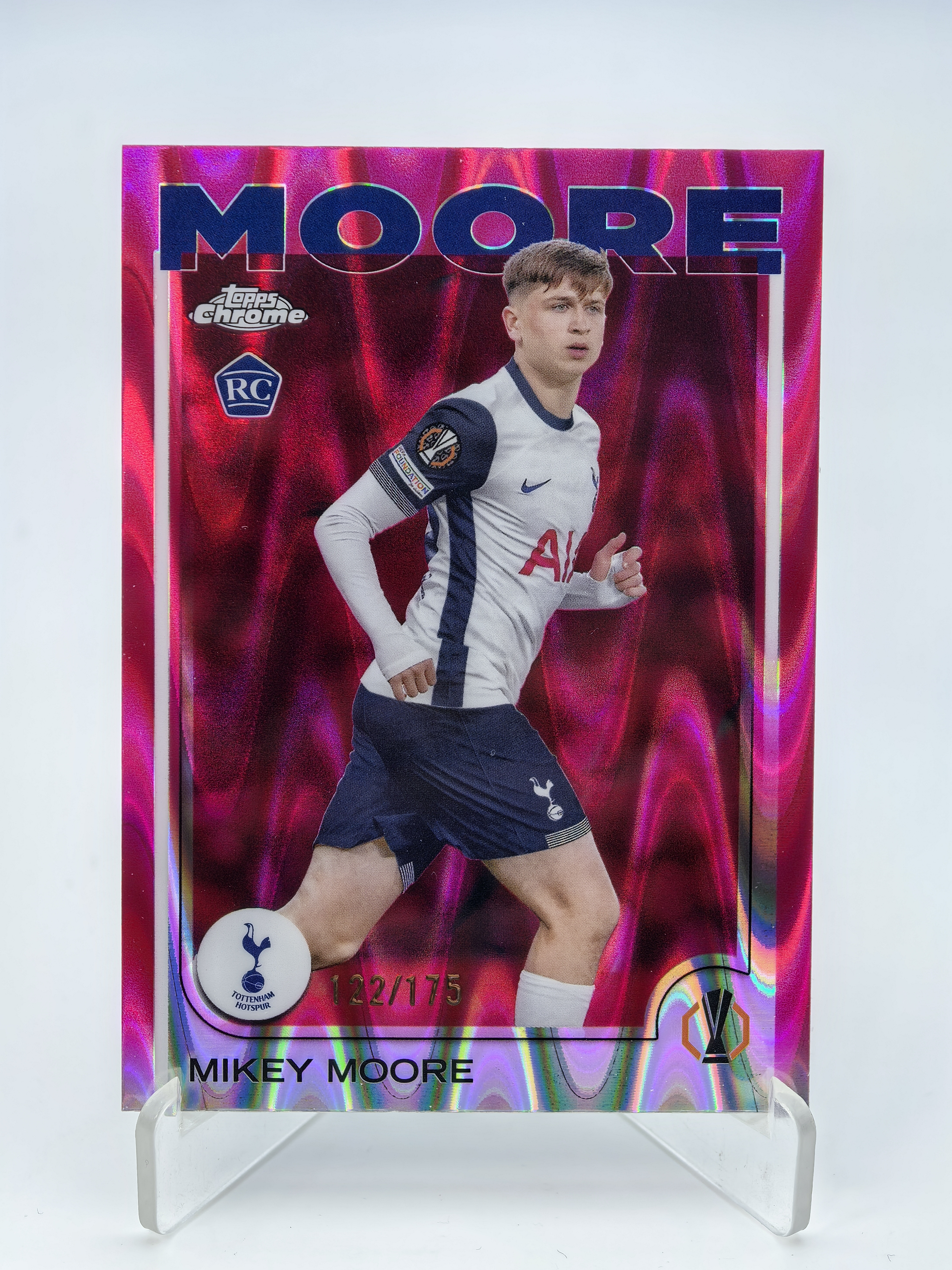 2025 Topps Chrome Mikey Moore 欧冠 欧战TC 新秀RC 热刺 米奇 摩尔 122/175编 粉变形虫折 折射 潜力无限 卡品如图 穷爷