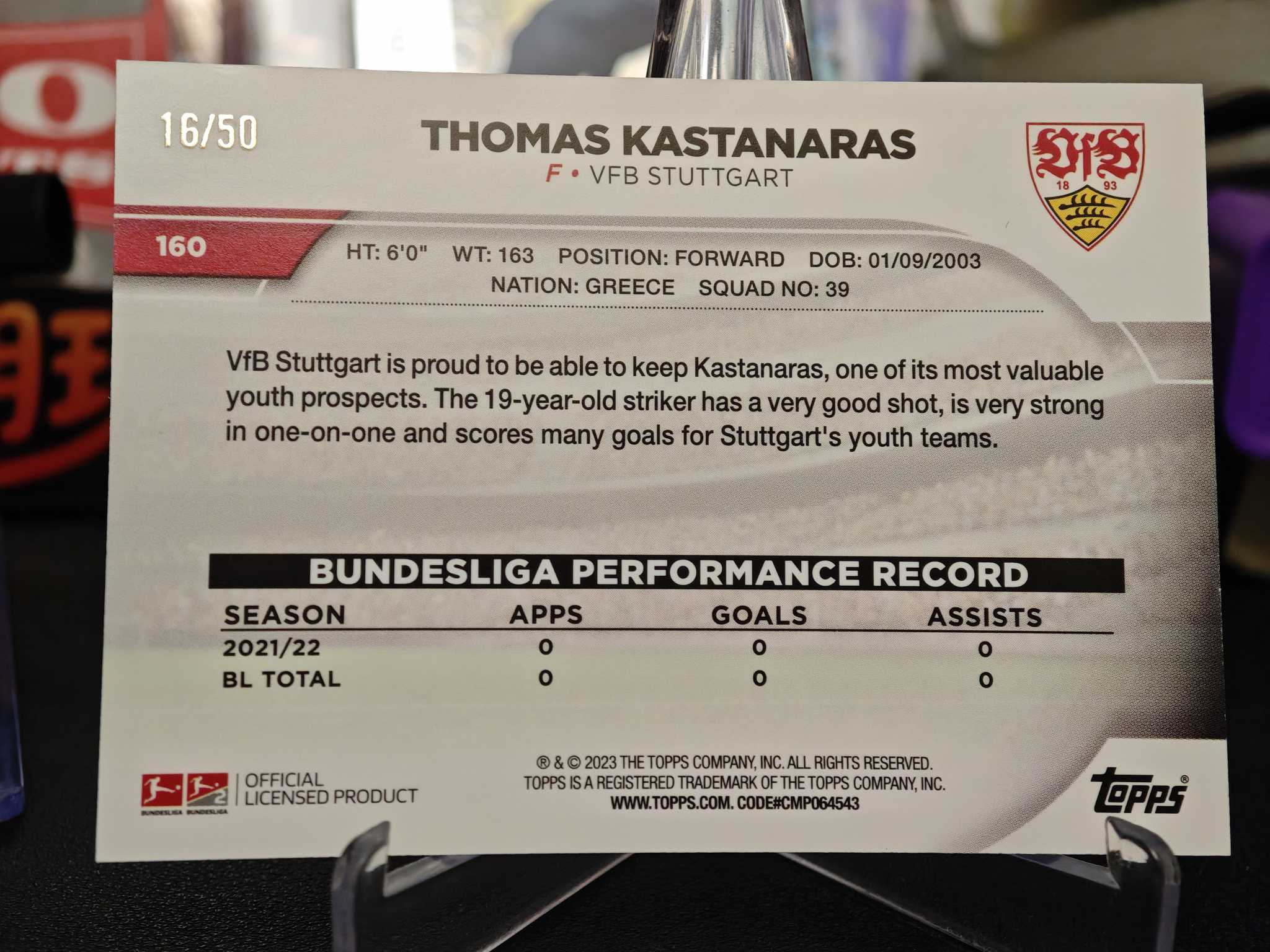 2023 Topps Chrome Thomas Kastanaras RC 隔天不合并,🇩🇪斯图加特 16/50 新秀 托马斯·卡斯塔纳拉斯 碧玉 施蒂勒队友 下拍前仔细阅读商品描述