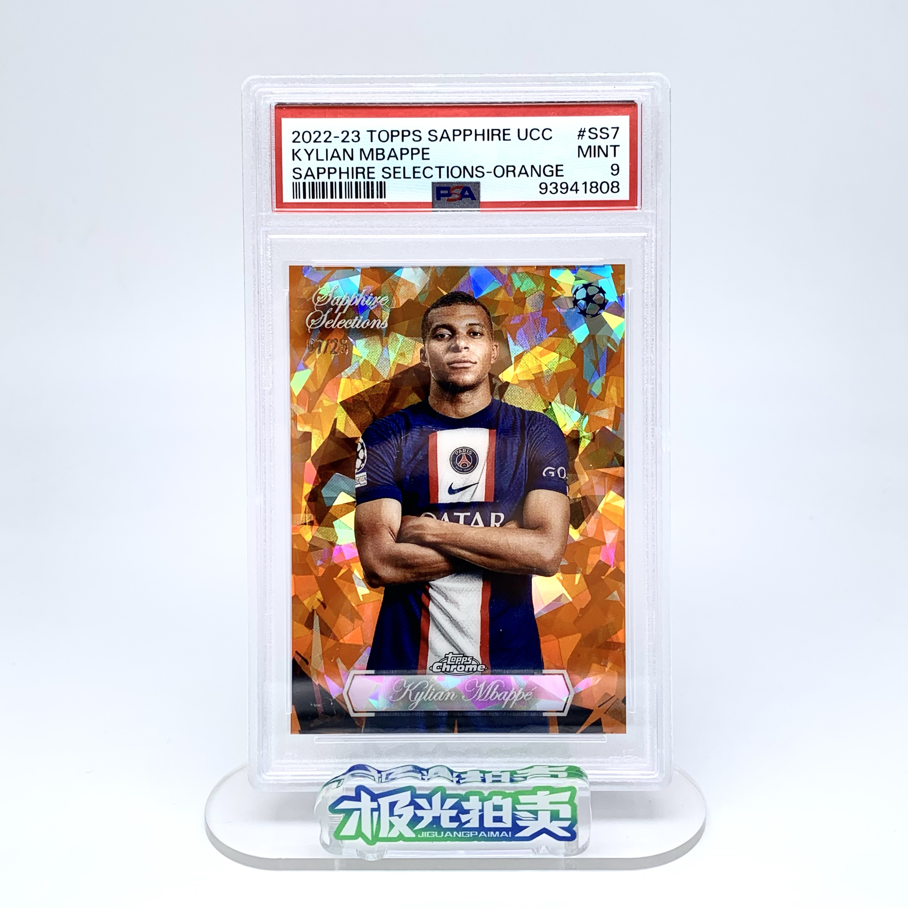 2023 Topps Chrome Kylian Mbappe 欧冠 蓝宝石TC 基利安姆巴佩 姆总 07/25编 低编 橙碎冰折 折射 大比例 精选特卡 巴黎 法国 皇马 PSA9 t WG367