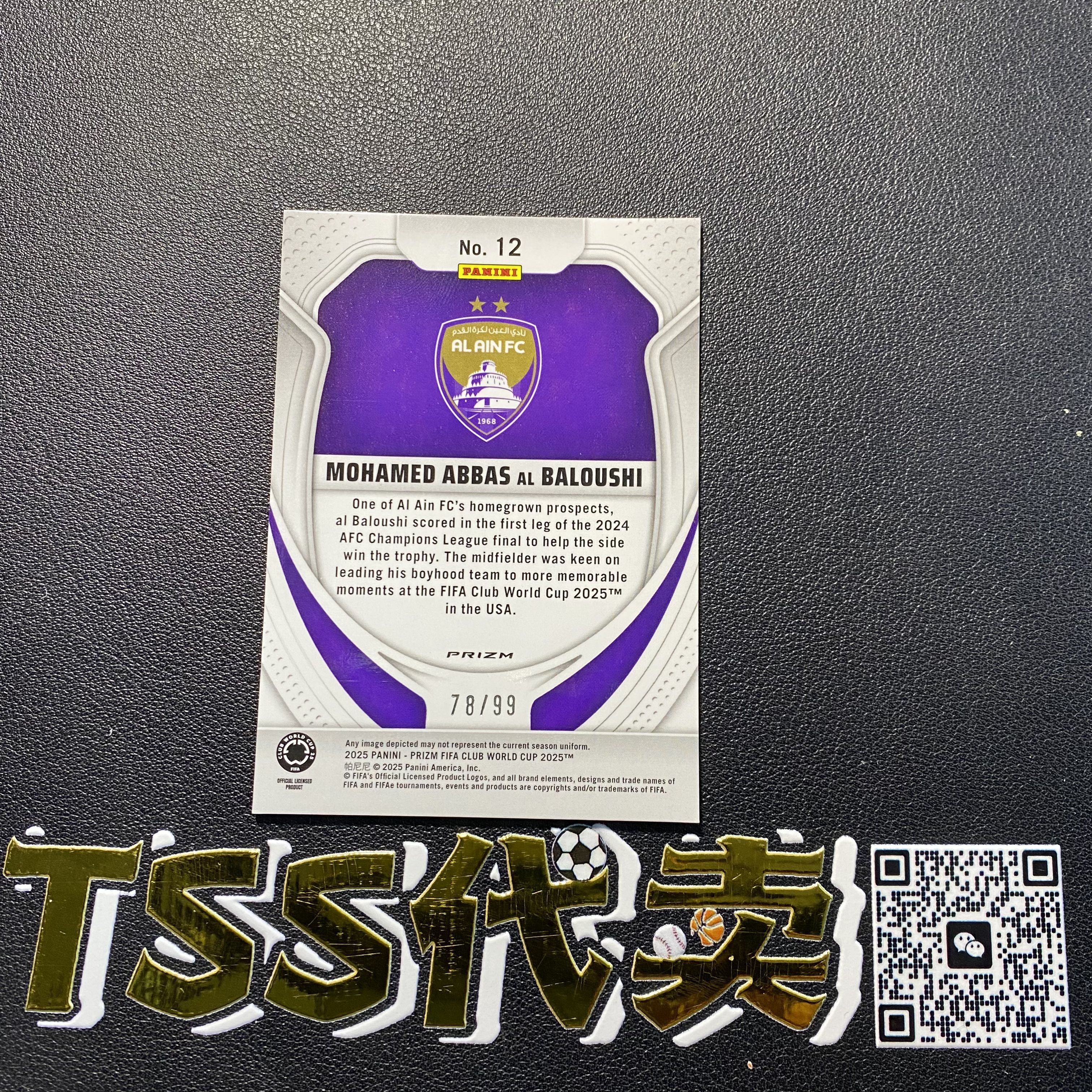 2025 Panini Prizm FIFA Club World Cup Baloushi RC 穆罕默德 阿巴斯 巴卢希 新秀 艾因 99编 橙磨砂折 折射 YN6333 ZK68-陳