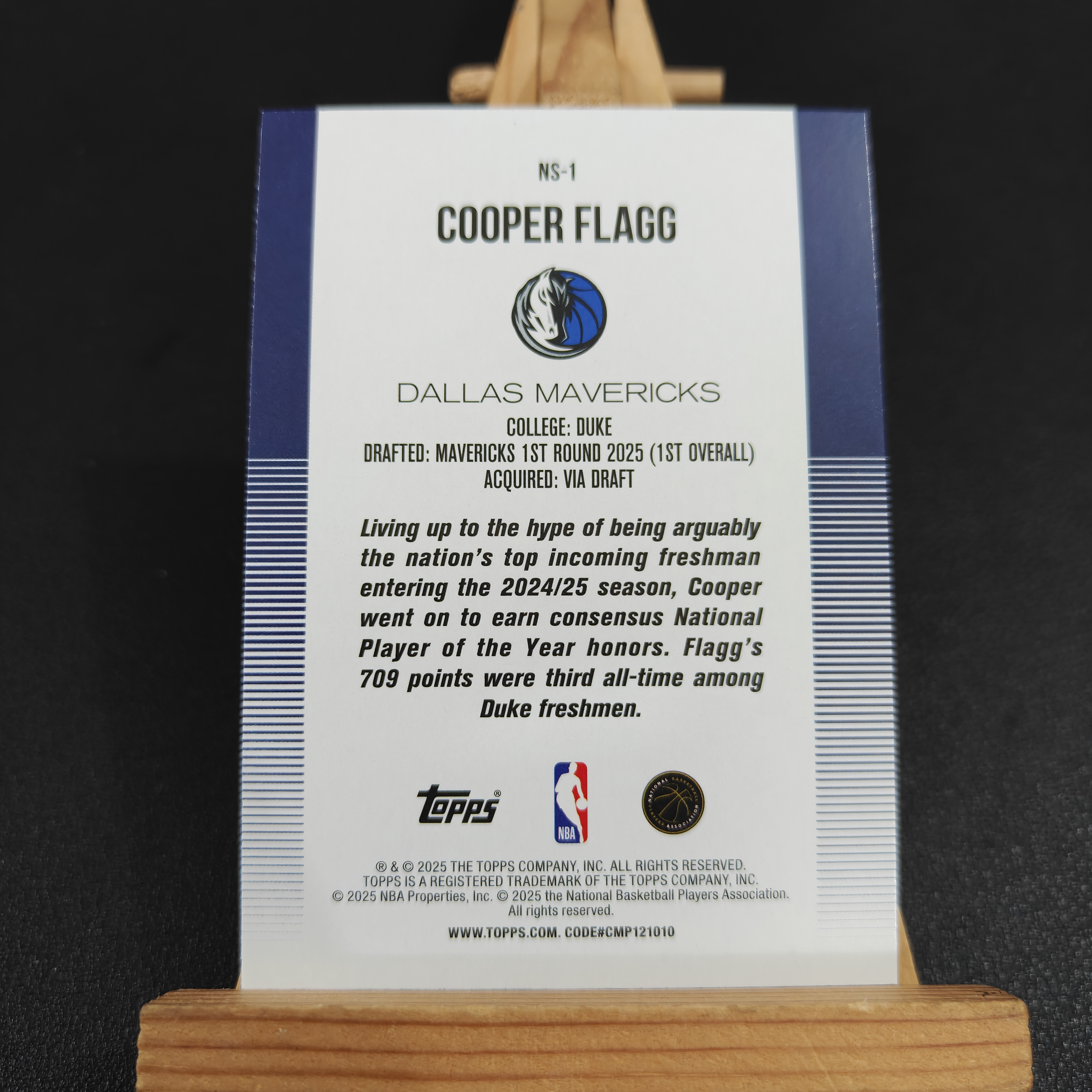 2025 Topps Flagship Flagg Cooper Flagg 库珀 弗拉格 独行侠 新秀RC NewSchool特卡 银折 收藏必备 卡品如图 芹泽