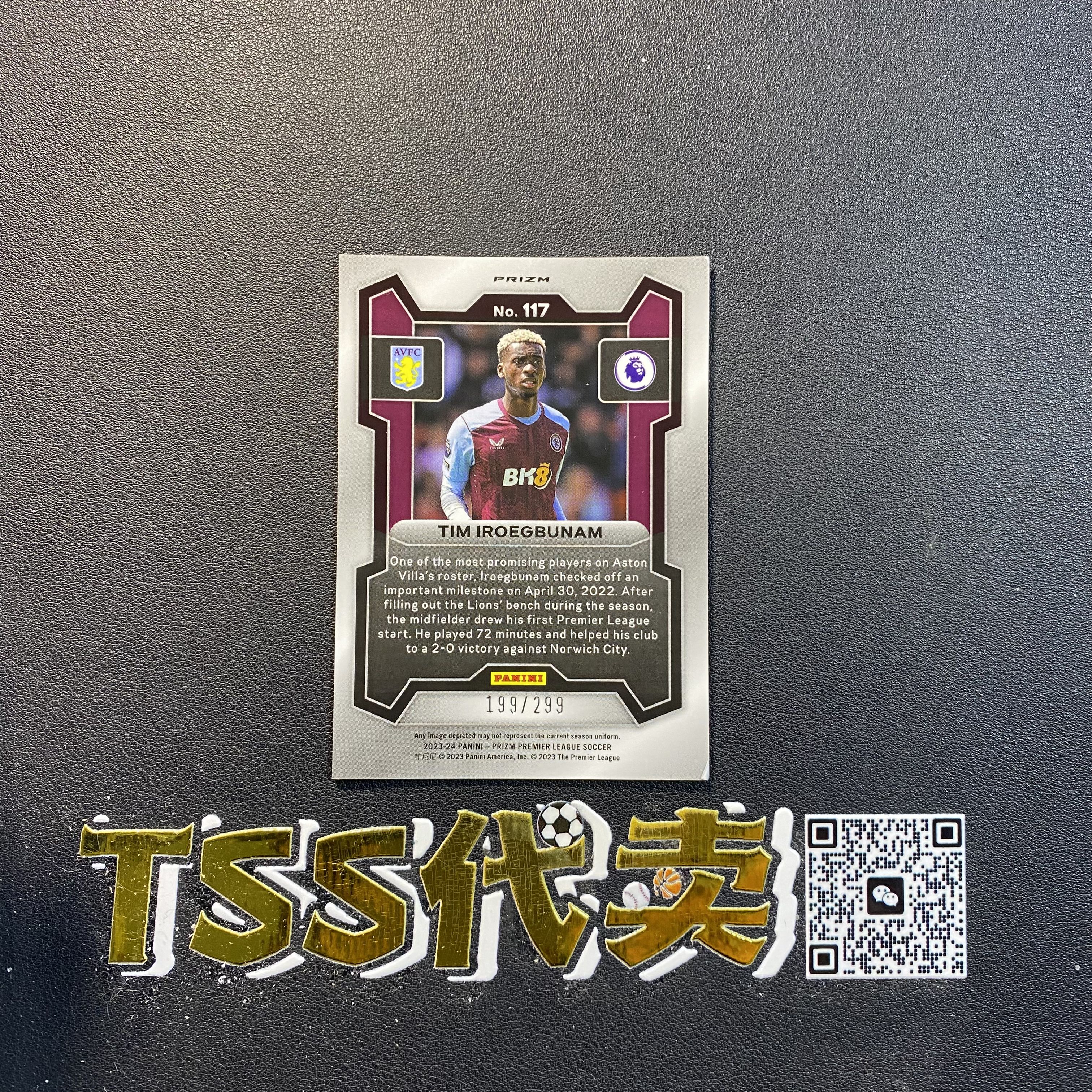 2023-24 【TSS代卖-预付80%】 Prizm Tim Iroegbunam 英超pz 伊罗格布南 阿斯顿维拉 新秀 /299编 蓝折 卡品如图 YS3034 ZK53-園
