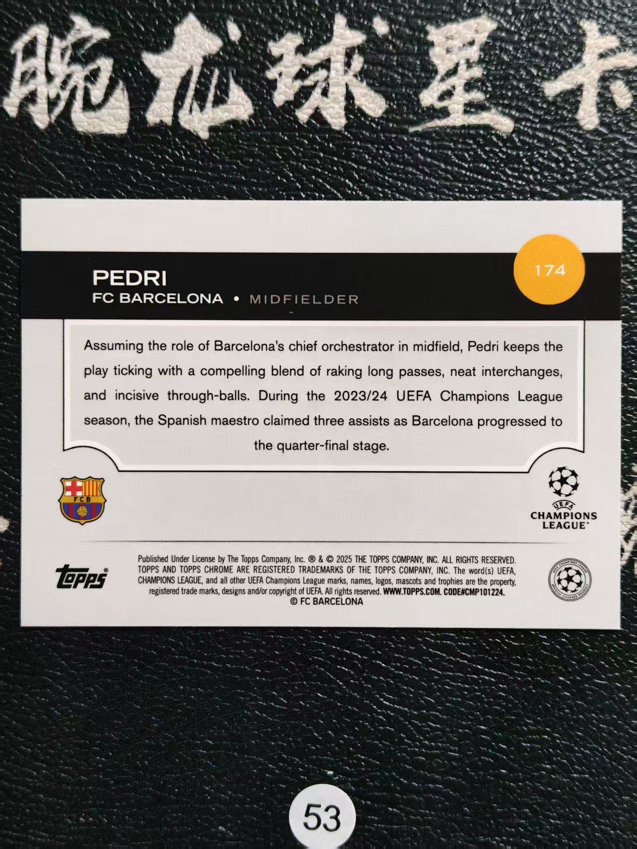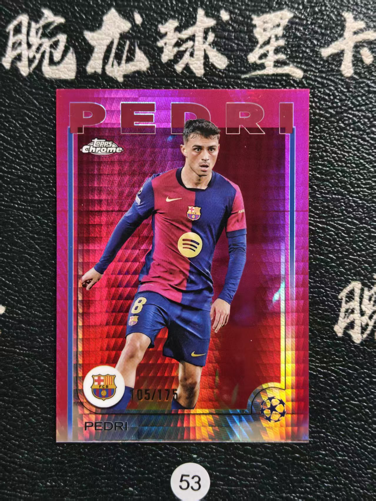 2025 【腕龙拍卖 接代卖】 腕龙E总AV8 Topps Chrome 欧冠 TC 佩德里 巴萨 巴塞罗那 西班牙 粉棱镜折 105/175编 PEDRI 卡品如图