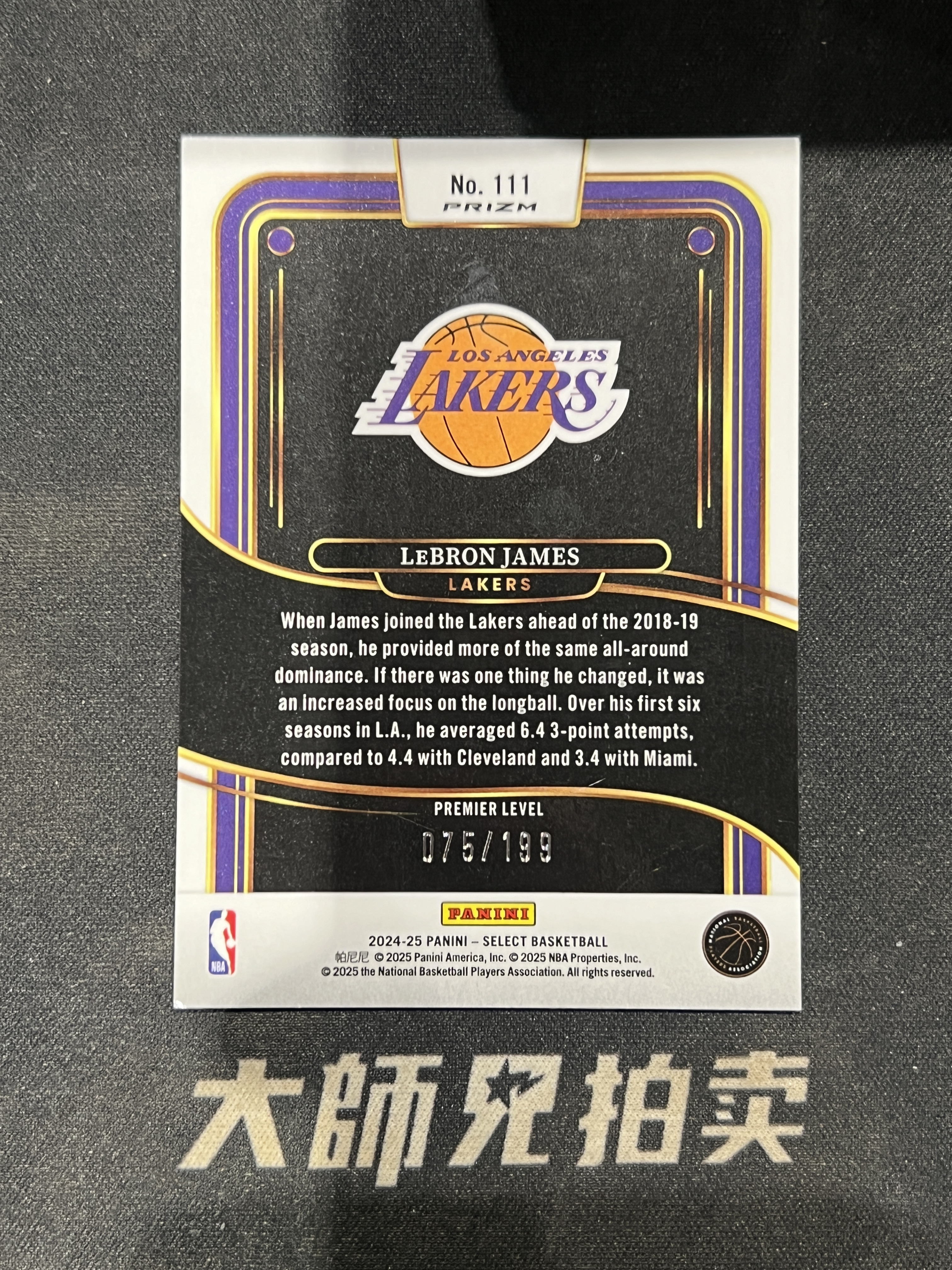 【大师兄拍卖】 2024-25 Panini Select LeBron James 勒布朗詹姆斯 湖人 188编 红折 二级 卡品如图-多说无益-
