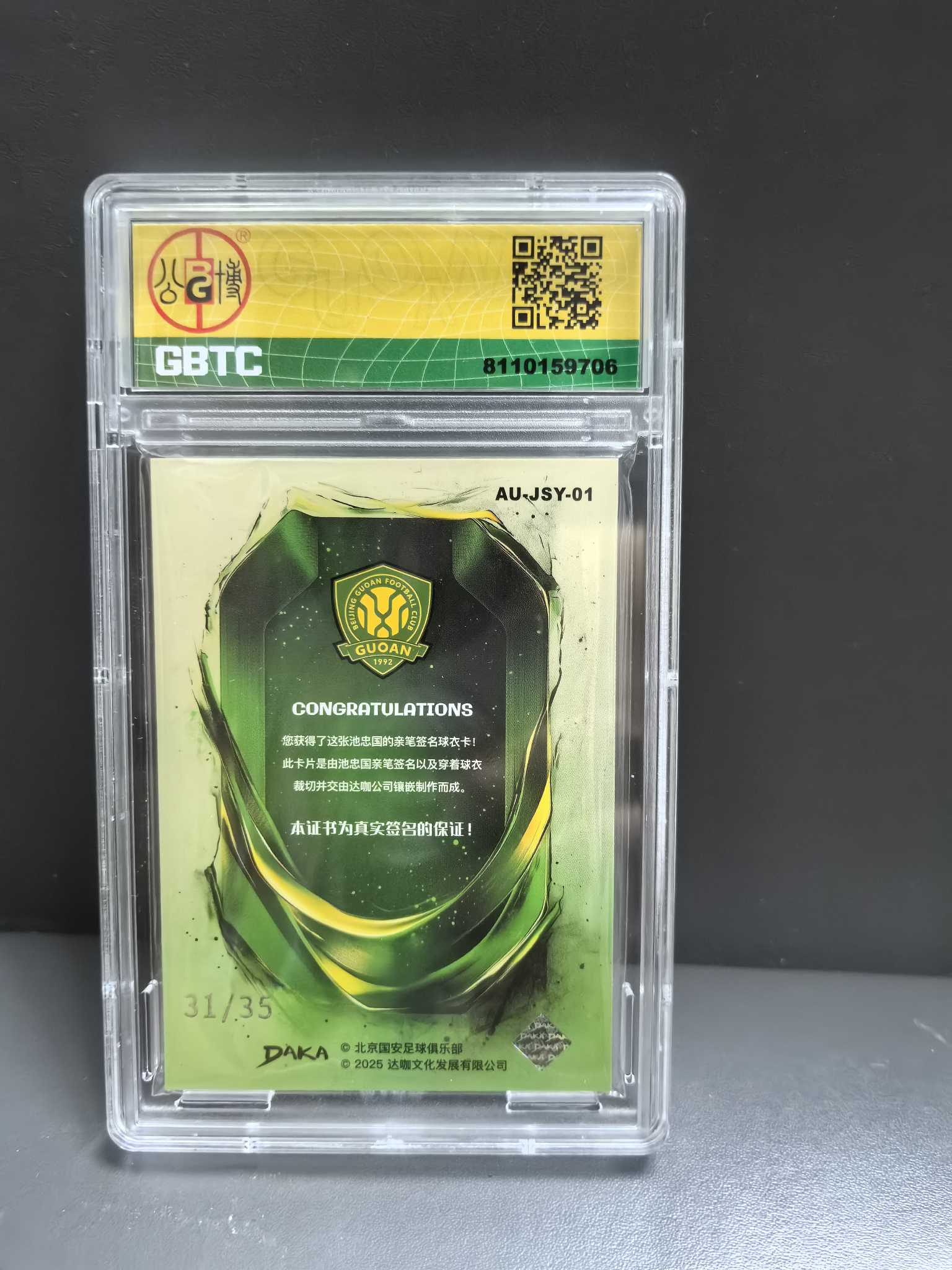 2025 DAKA 北京国安队盒 Chi Zhongguo 池忠国 单窗Patch 暴力切割 亲穿物料签字卡签 PA银折低编 35编 GBTC 公博评级9分 微瑕张稀哲张玉宁法比奥韩佳奇队友daka