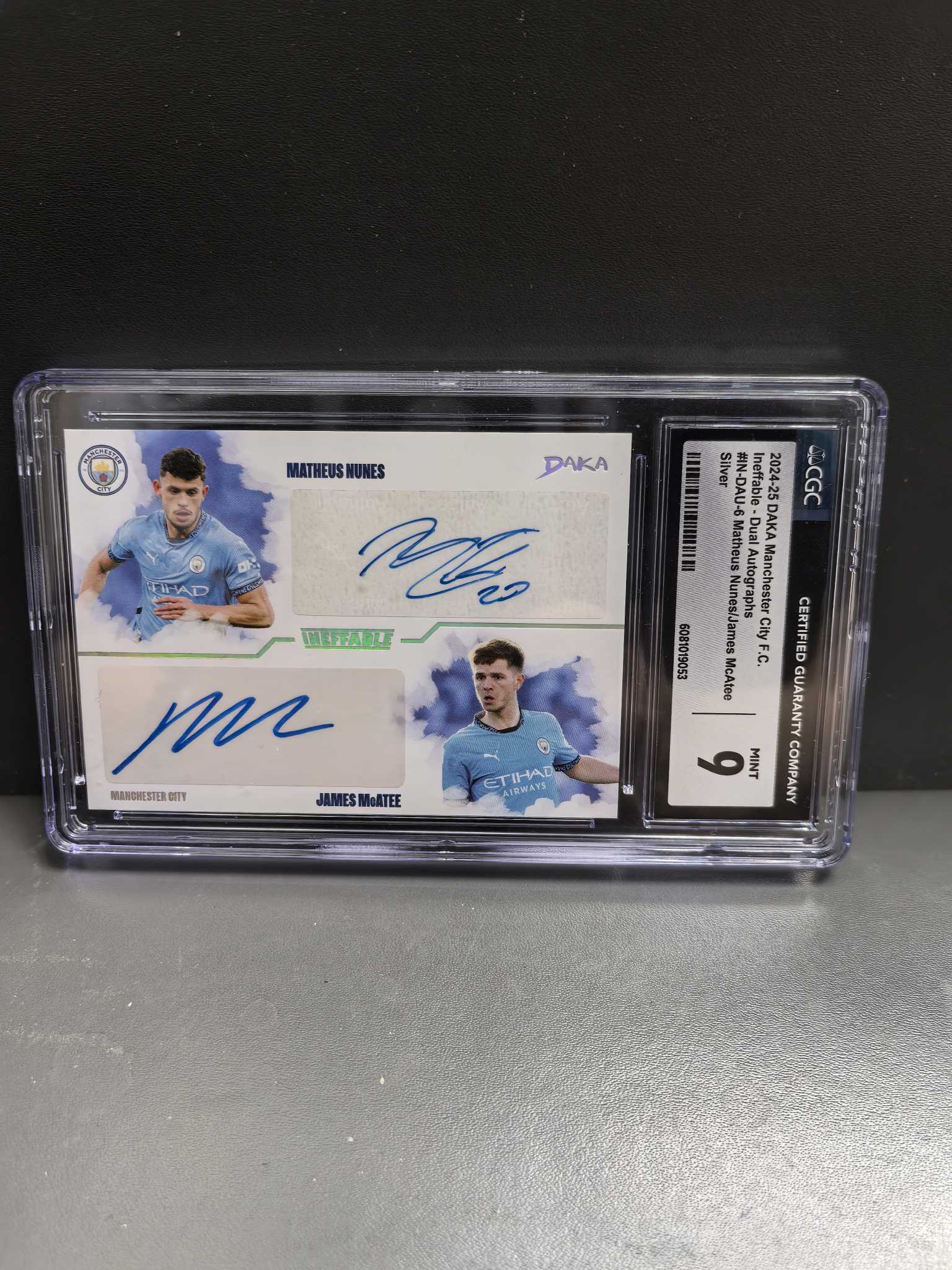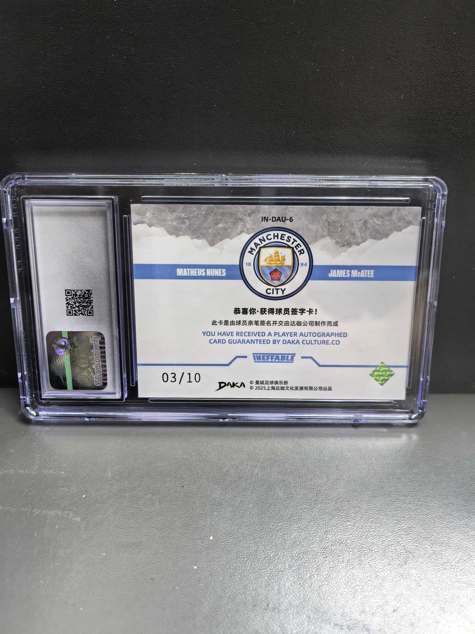 2024-25 Daka 达咖 曼城队盒 Matheus Nunes 努内斯 James McAtee 麦卡蒂 双签 双人签字 03/10编 低编银折 CGC评级9分巴西英格兰 哈兰德德布劳内福登队友