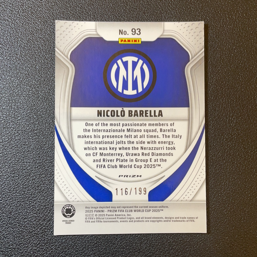 2025 Panini Prizm FIFA Club World Cup Nicolo Barella 尼科洛 巴雷拉 国际米兰 意大利 199编 红折 折射 元年 世俱杯PZ 轻印-SY8032