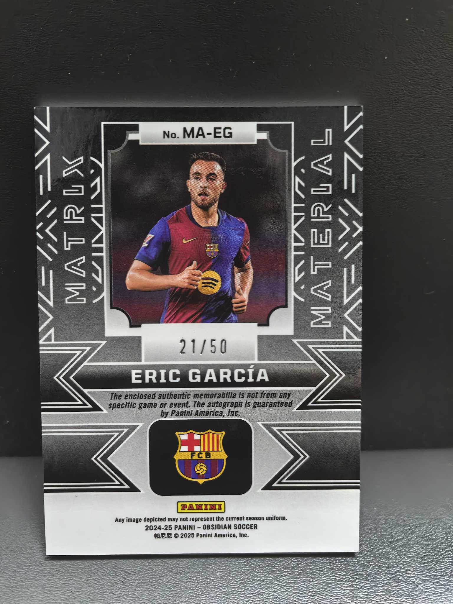 2024-25 Panini Obsidian 黑曜石 ERIC GARCIA 巴萨 埃里克 加西亚 球衣物料签字 50编 紫折类似金折金熔岩折西班牙曼城 微痕 亚马尔佩德里加维尼克威廉姆斯队友