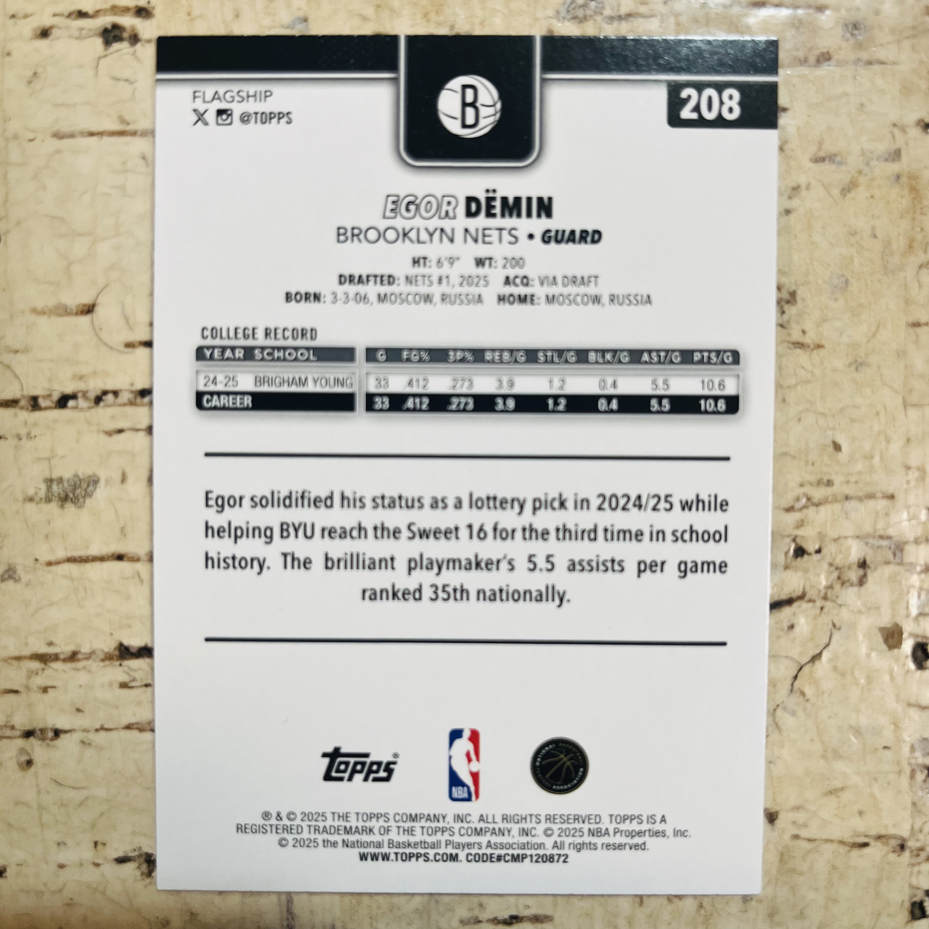 2025-26 Topps Flagship Egor Demin RC 新秀 篮网 杰明 德明 正银折 银折射 holo折 第1张 稀有折射 凑彩虹必备【小卡迷拍卖 可累积半年】