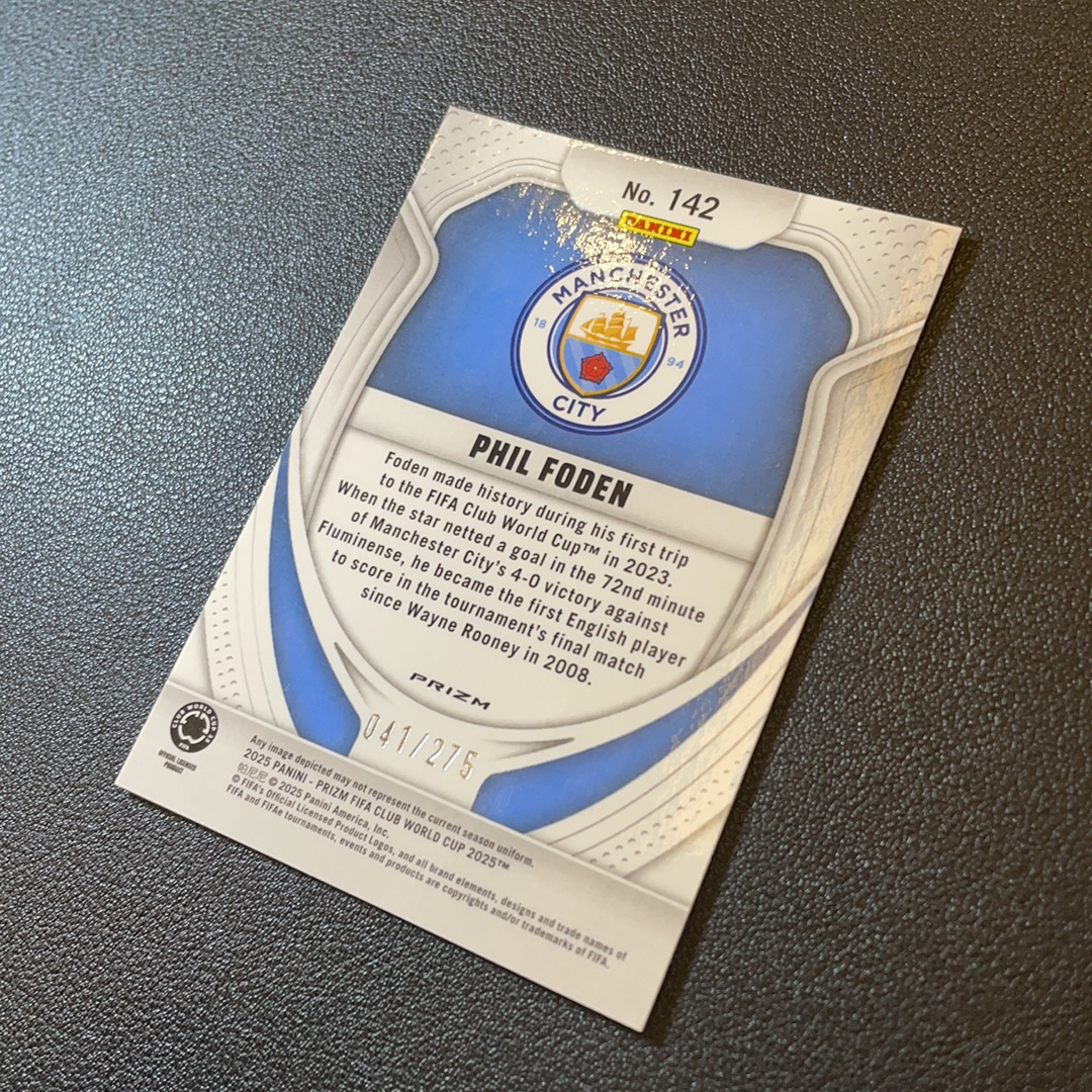 2025 Panini Prizm Phil Foden 世俱杯PZ 曼城 曼切斯特城 菲尔 福登 蓝折 脉冲折 275编 收藏必备 轻印-SY8031