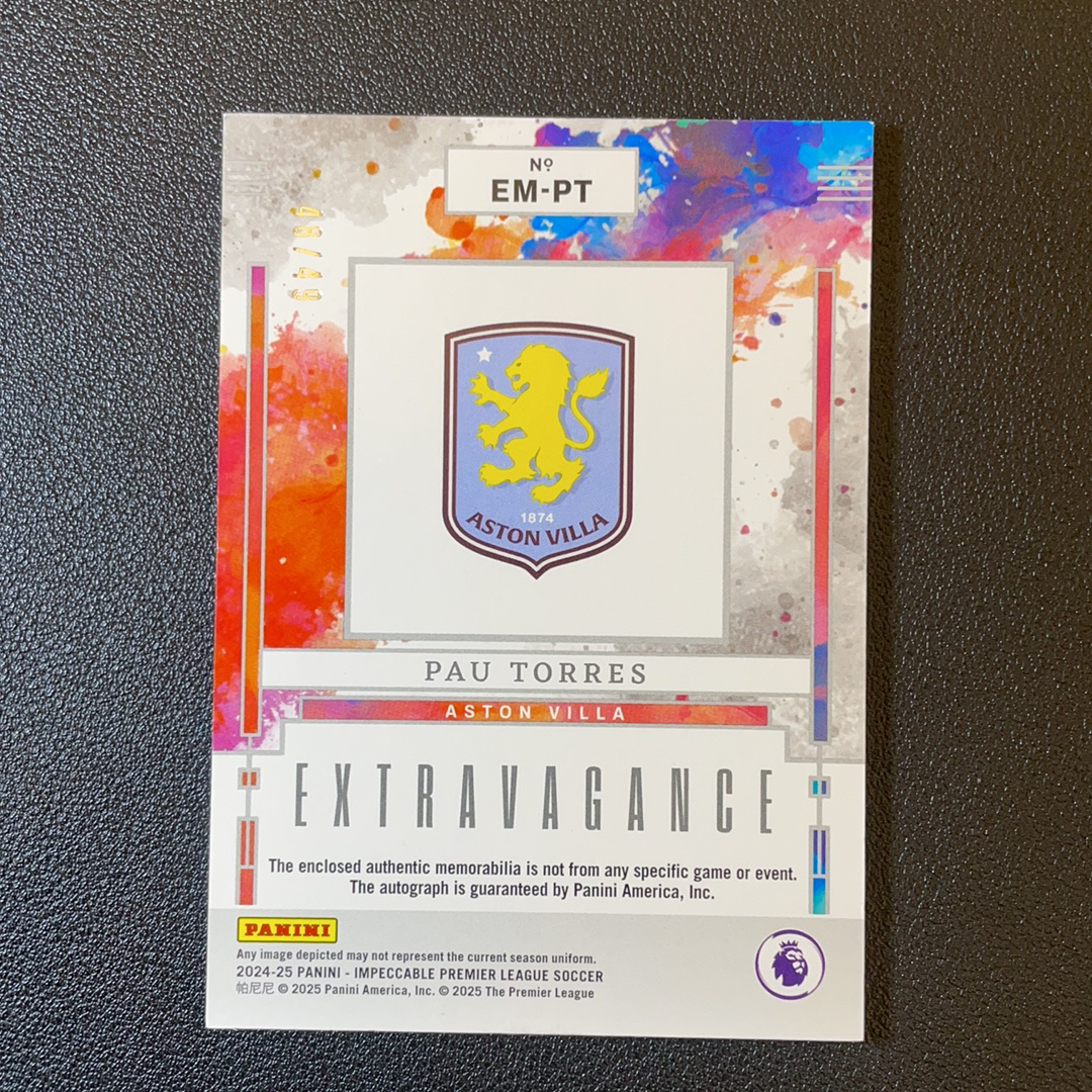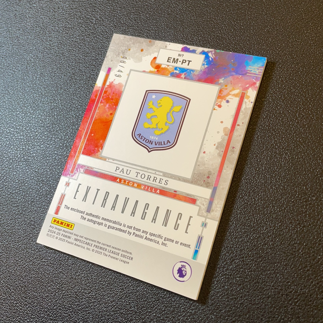 2025 panini impeccable英超小真金 保·托雷斯 Pau Torres 阿斯顿维拉 西班牙 48/49编 低编 签字 patch物料 暴力切割 轻印-SY8031