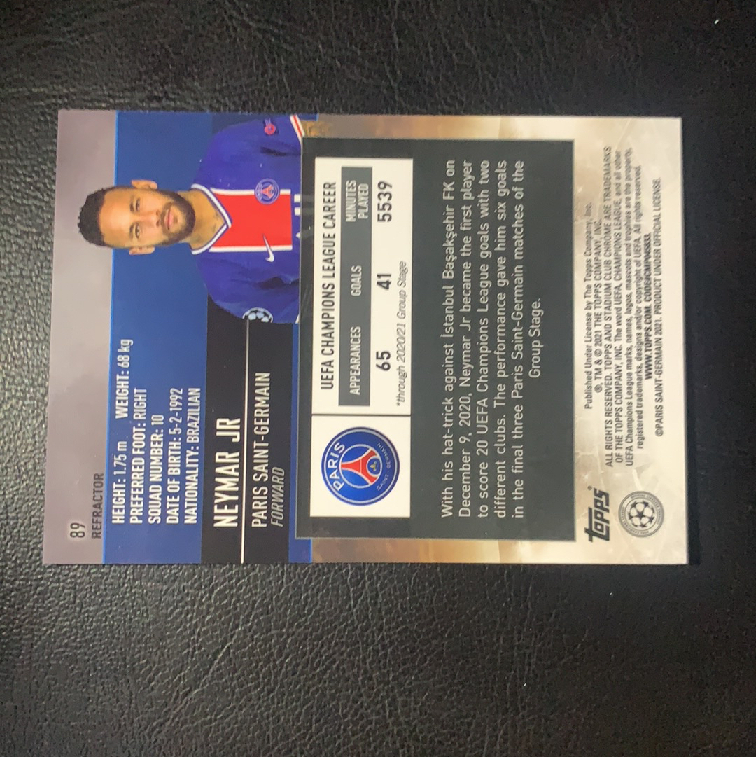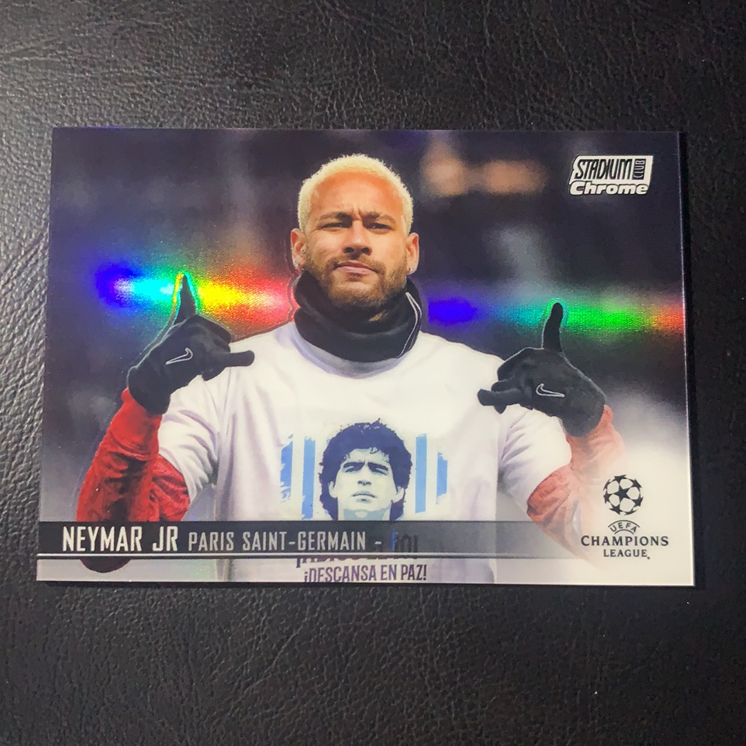 2020-21 Topps Stadium Club Chrome Neymar Jr 元年 欧冠竞技场 内马尔 巴西 巴萨 巴黎 经典致敬马拉多纳选图 银折 卡品如图