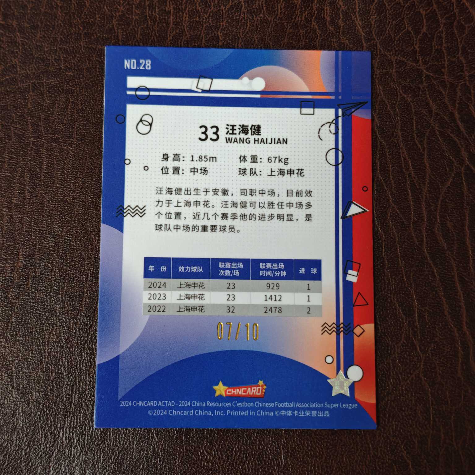 【HY拍卖】2024 中体卡业 CSL ACTAD(中超渲染) 07/10编 超低编 上海申花 汪海健 客场球衣选图 base 金折 折射 专收必备 不保卡品