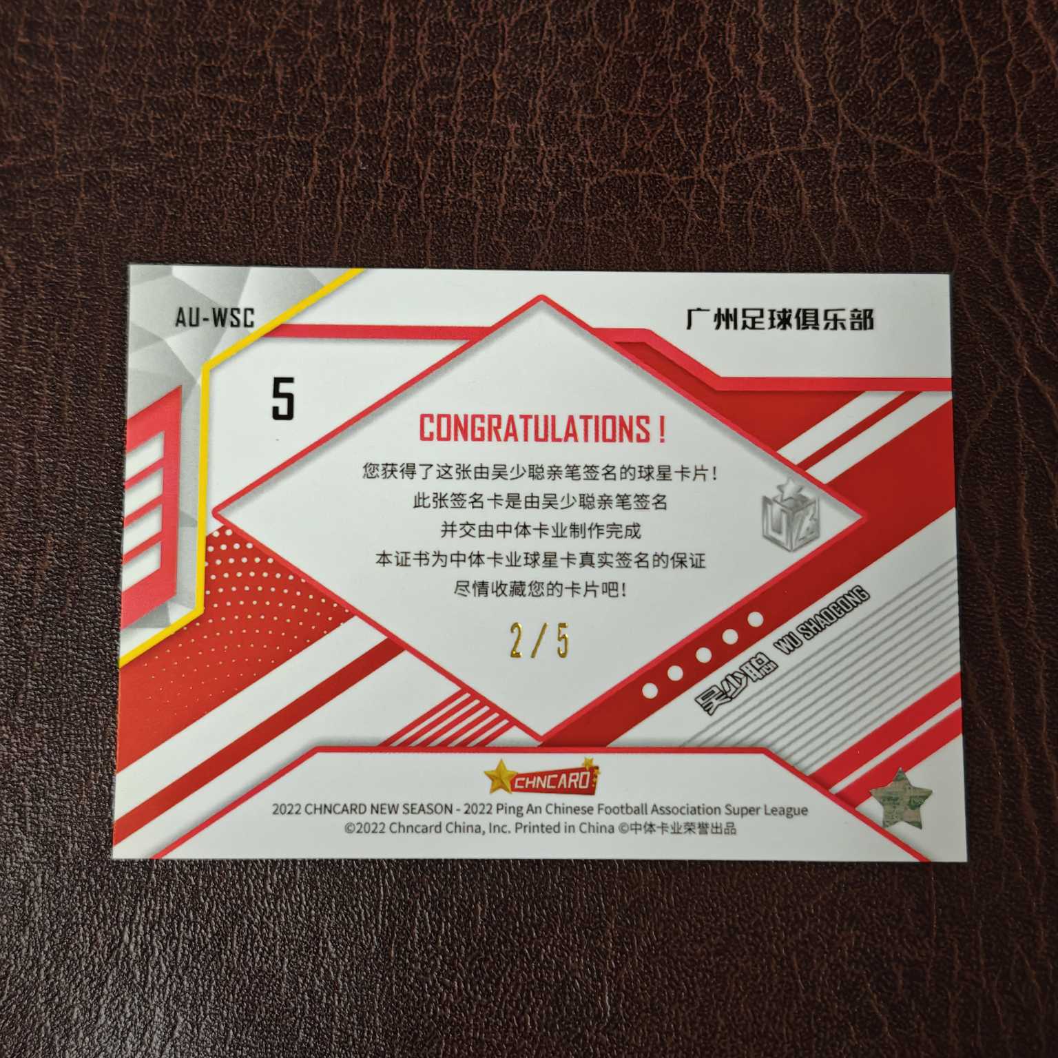 【HY拍卖】2022 中体卡业 CSL NEW SEASON(中超新赛季)2/5编 国安同背 超低编 广州队 北京国安 吴少聪 交错空间签字 金签 金星星折 金折 折射 专收必备 不保卡品