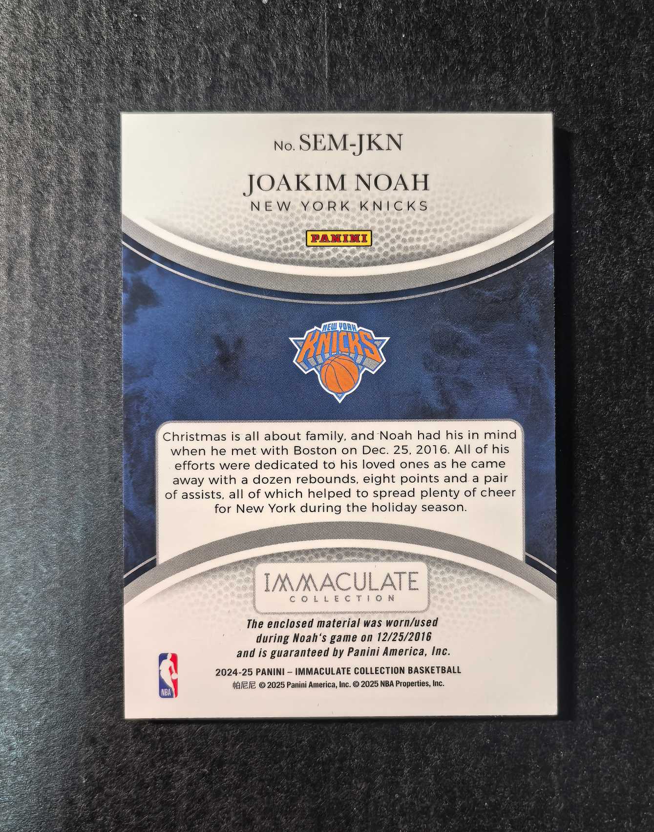 2024-25 Panini Immaculate Joakim Noah 爱咪咪 乔金 诺阿 08/10编 Patch 暴力切割 圣诞节物料 特殊事件 SEM 单一平行 大比例 SP 卡品如图
